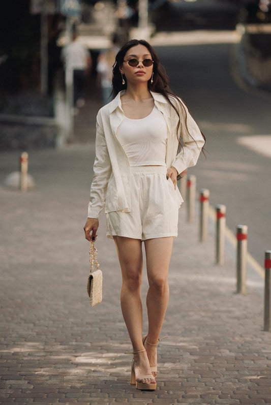 34% İndirimKrem Esinti Keten Takım