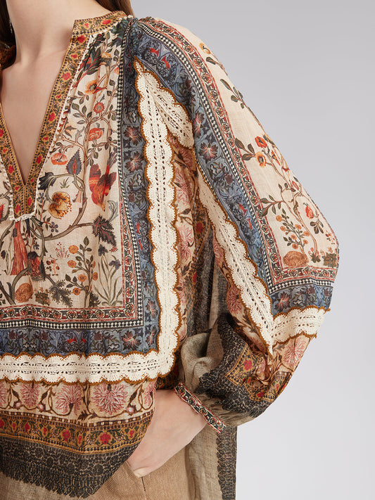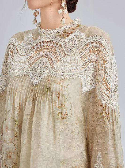 34% İndirimİpek-Keten Barok Dantel Bluz
