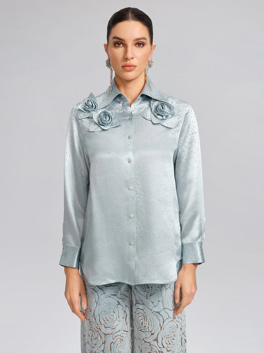 33% İndirimSaten Taşlı 3 Boyutlu Çiçekli Gömlek