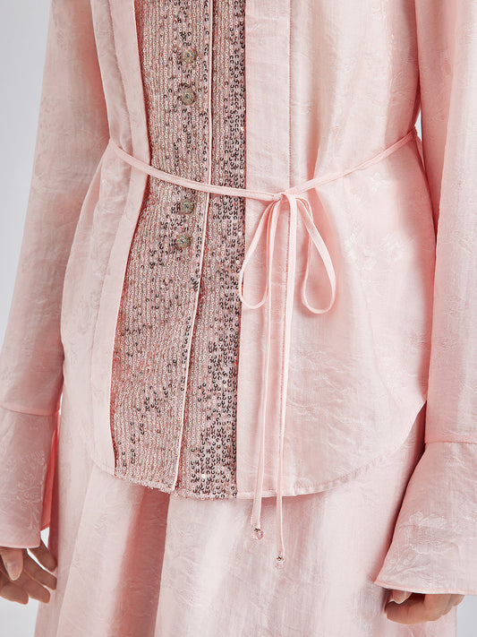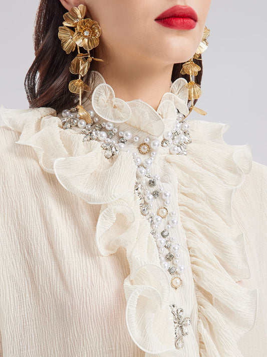 35% İndirimFırfırlı Hakim Yaka Boncuklu Gömlek