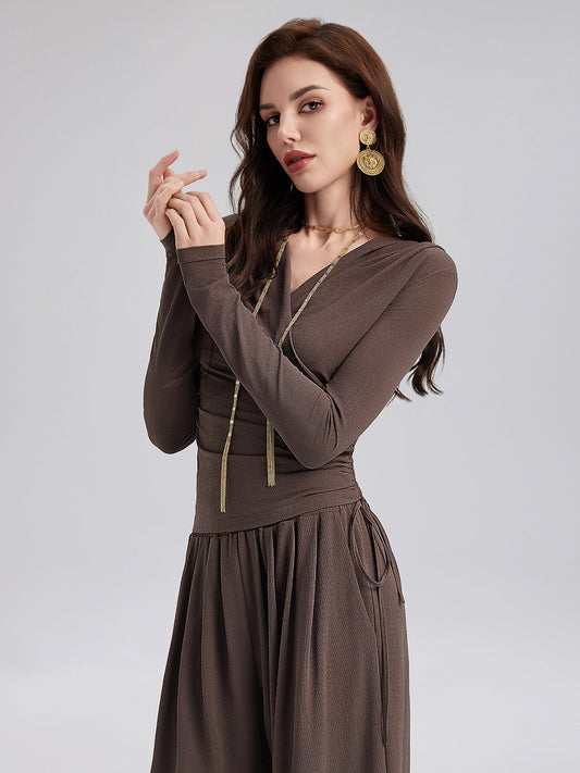 33% İndirimBüzgülü Kruvaze V Yaka Triko Bluz