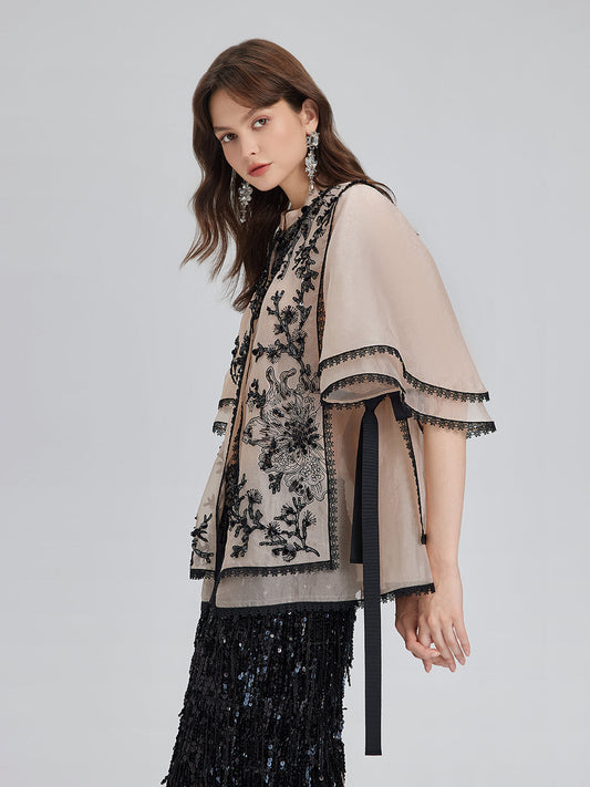 33% İndirimPullu Boncuk Nakışlı Organze Bluz