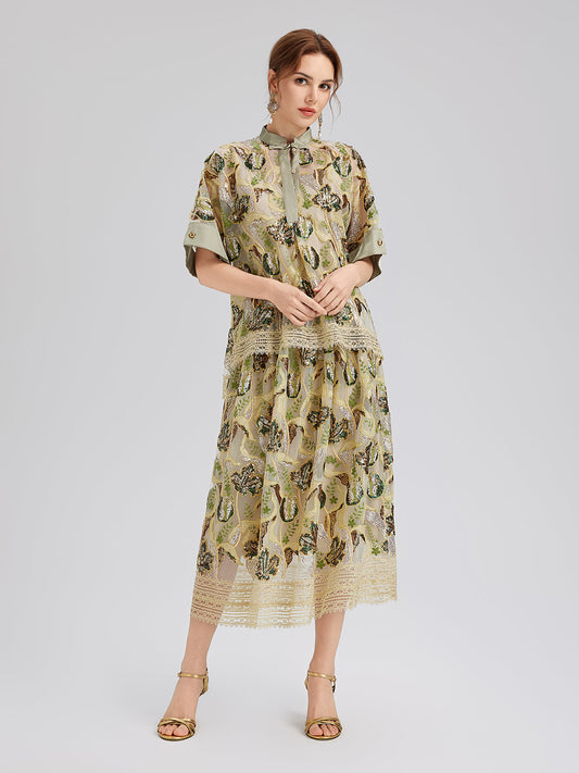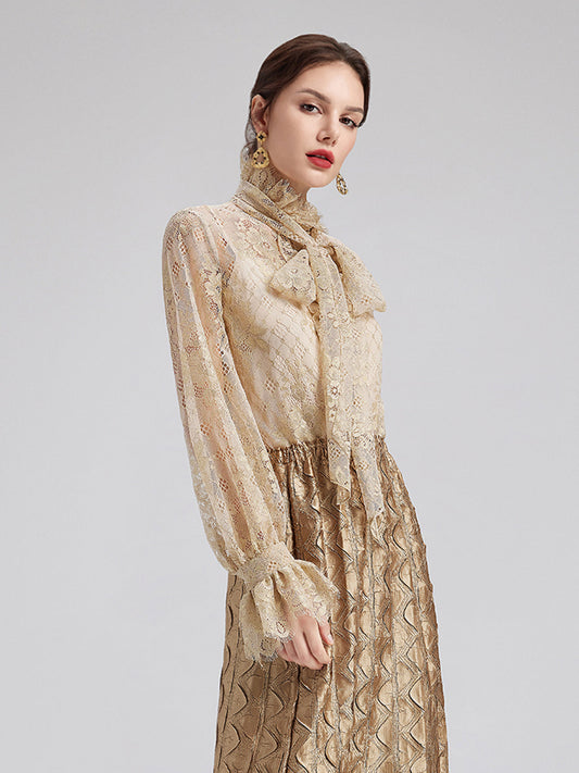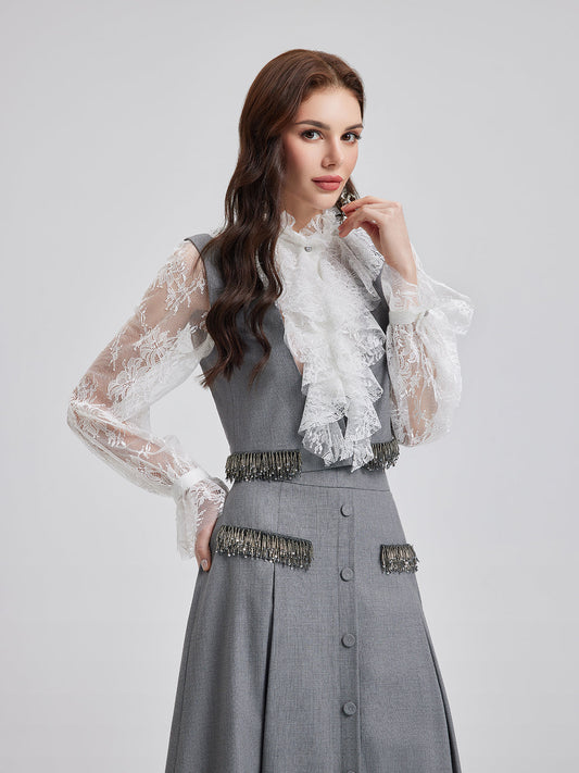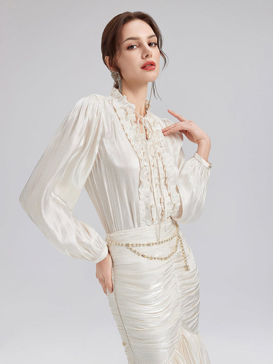 34% İndirimRomantik Fırfırlı Metalik Dantel Gömlek