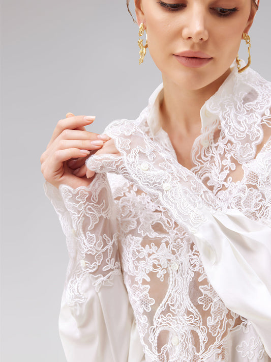 33% İndirimHalat Dantel Nakışlı Lüks İpek Bluz