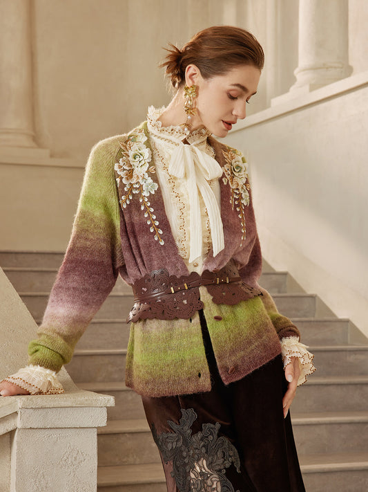 34% İndirimİtalyan Çiçekli İpek Taşlı Kazak