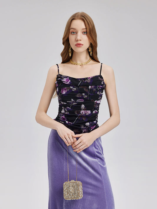 34% İndirimGül Desenli Büzgülü Askılı Bluz