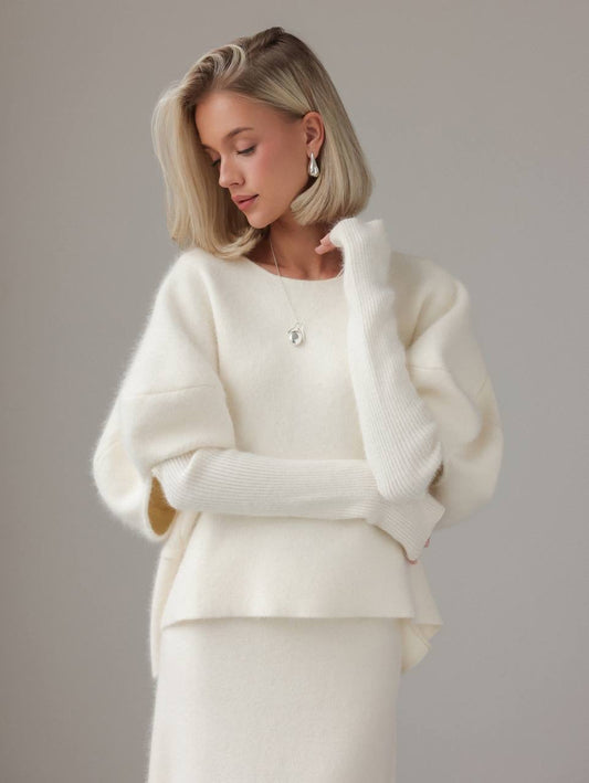 34% İndirimİnci Detaylı Beyaz Triko Kazak