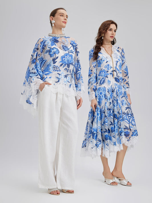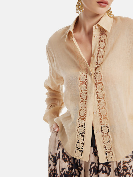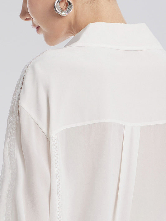 34% İndirimDantel Yerleştirmeli Nakışlı Gömlek