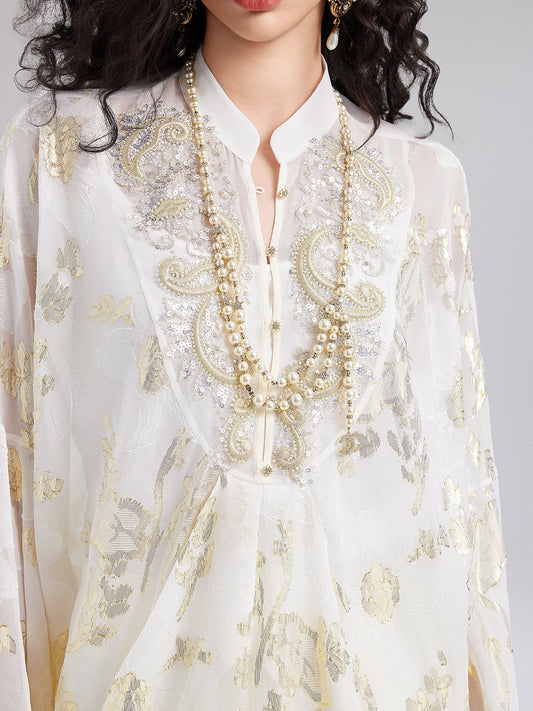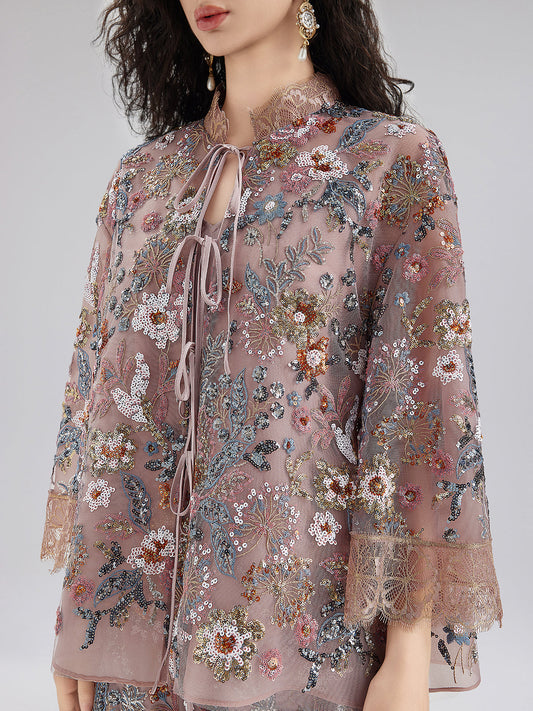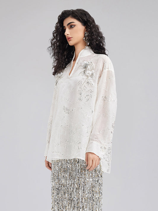 33% İndirimLüks Şeffaf İpek Nakışlı Bluz