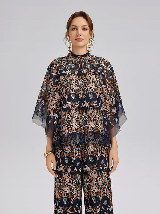 34% İndirimKuş Nakışlı Etnik Pelerin Bluz