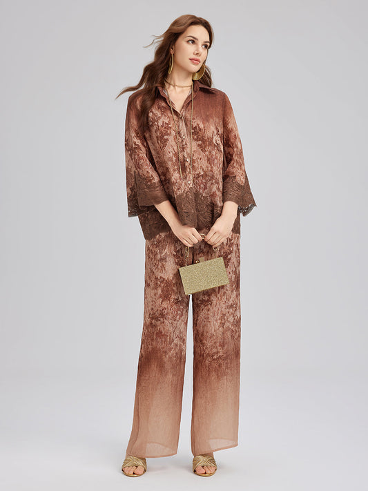 33% İndirimYağlı Boya Desenli İpek-Keten File Bluz