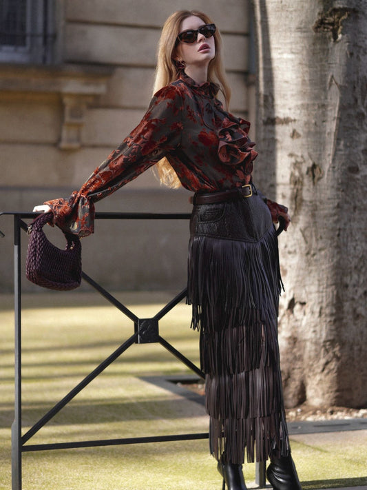 34% İndirimYoğun Püskül Nakışlı Pencereli Bluz