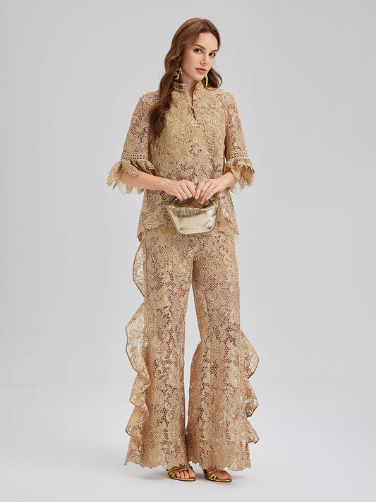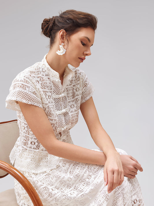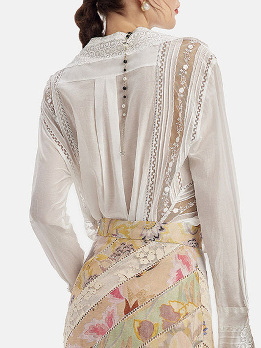 34% İndirimUstalık İşi Düğmeli Dantel Gömlek