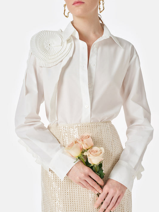 34% İndirimÜç Boyutlu Pileli Çiçekli Pamuklu Gömlek