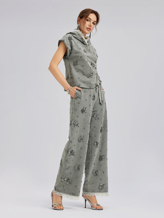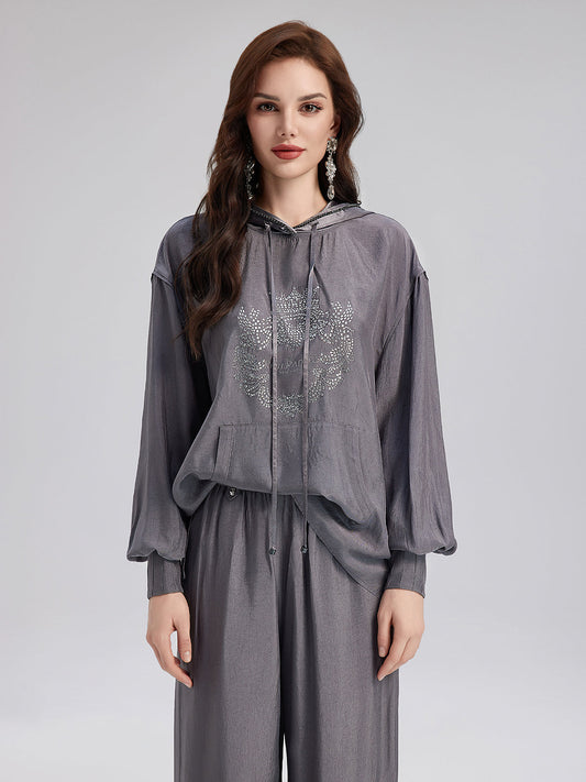 33% İndirimEl Yapımı Taşlı Kapüşonlu Sweatshirt