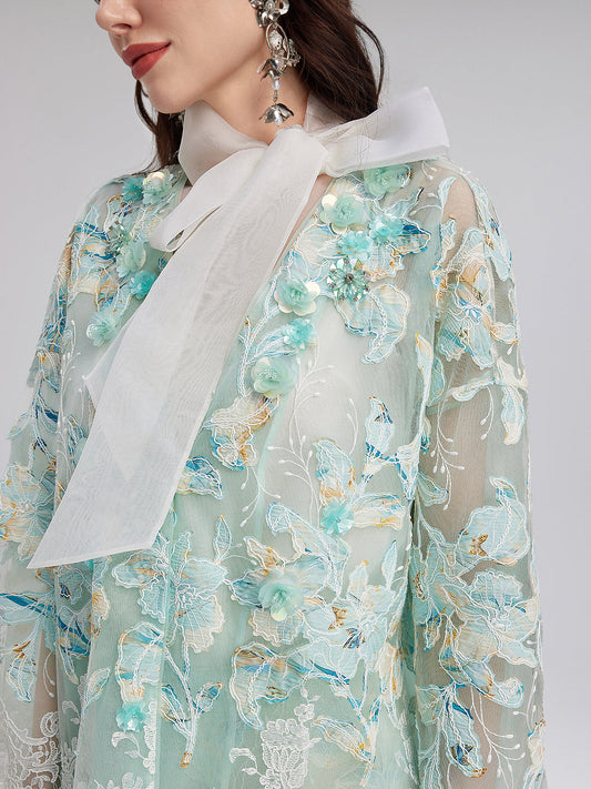 34% İndirimEl İşlemesi Pullu Nakışlı Çiçekli Dantel Bluz