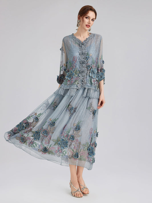 35% İndirimEl Yapımı 3 Boyutlu Çiçekli İpek Bluz