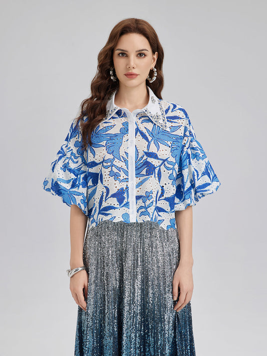 35% İndirimEl İşlemeli Taşlı Çiçekli Bluz