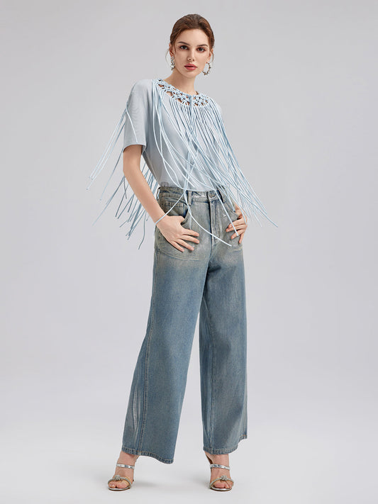 34% İndirimEl Yapımı Örgü Püsküllü Tişört