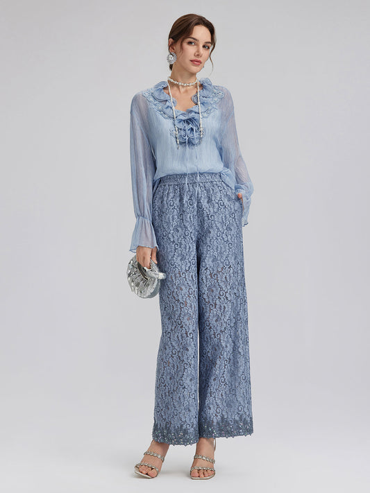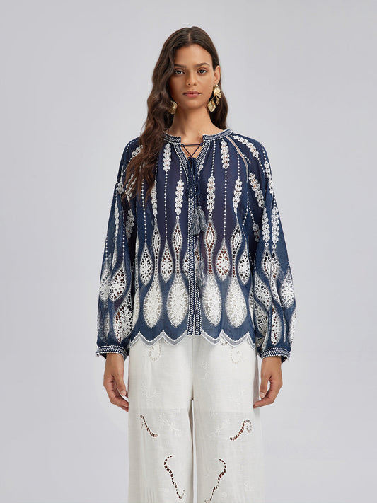 35% İndirimEl İşlemesi Dantel Uzun Kollu Bluz