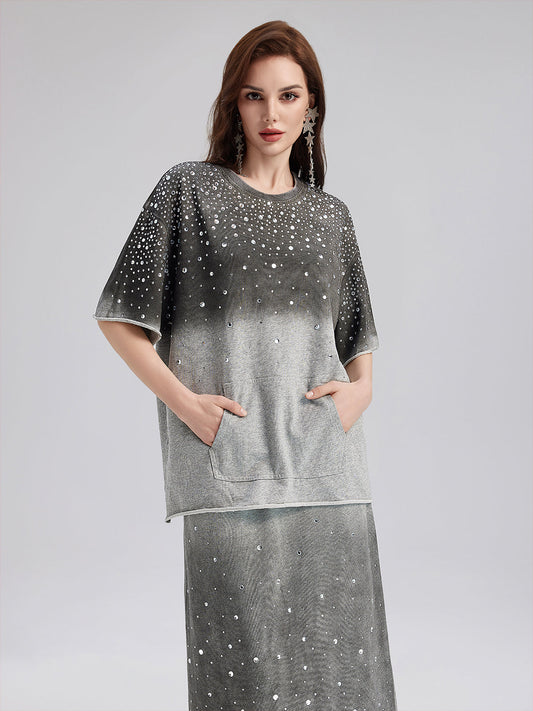 34% İndirimRenk Geçişli Kaplama Taşlı Triko Tişört