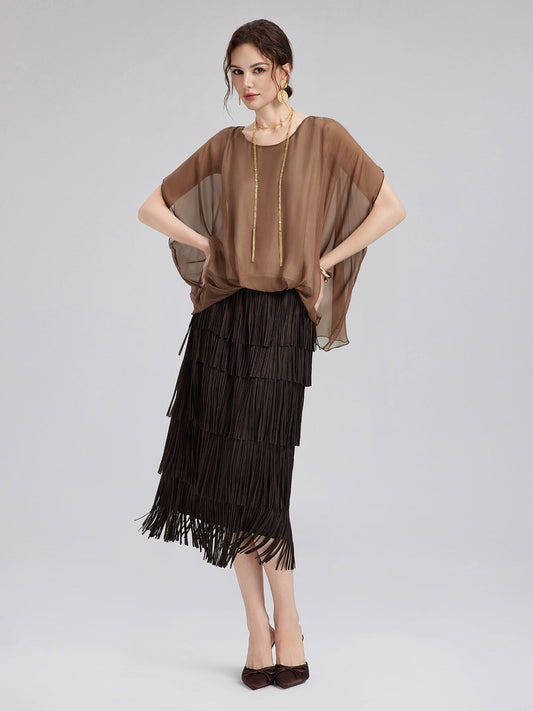 34% İndirimEl Boyaması Şeffaf İpek Bluz