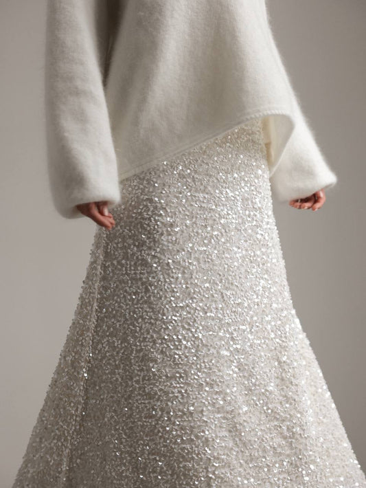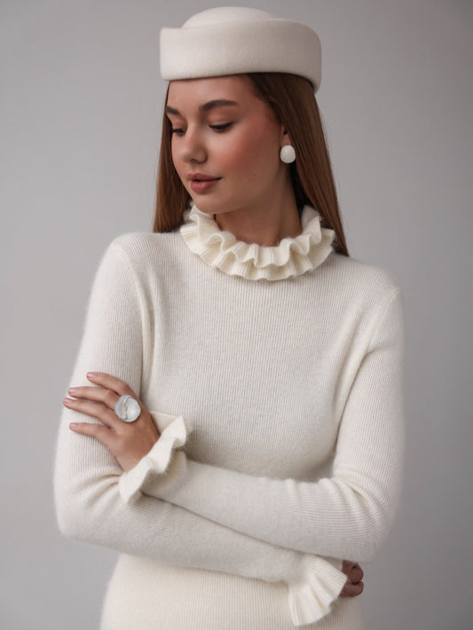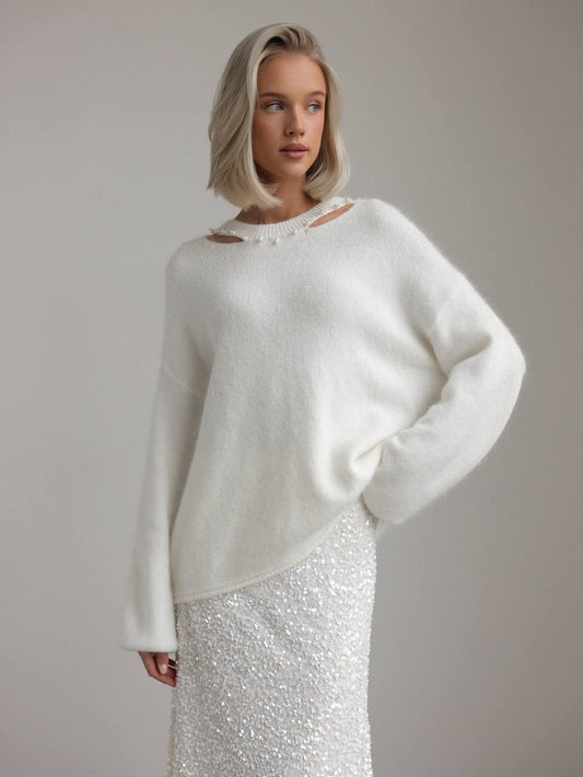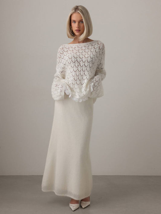 34% İndirimİnci Detaylı Beyaz Triko Kazak