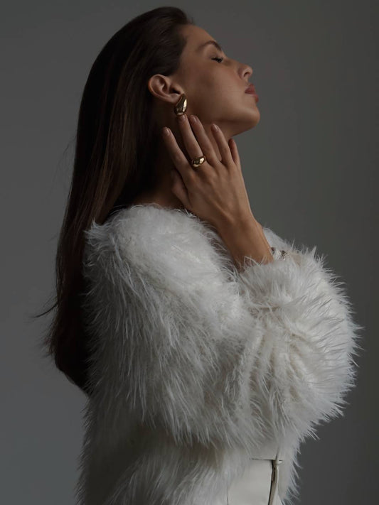 34% İndirimYumuşak Dokulu Beyaz Peluş Ceket