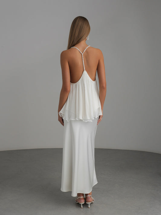 33% İndirimBeyaz Jakarlı Midi Elbise