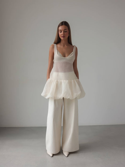 33% İndirimÇiçek Detaylı Beyaz Mini Takım