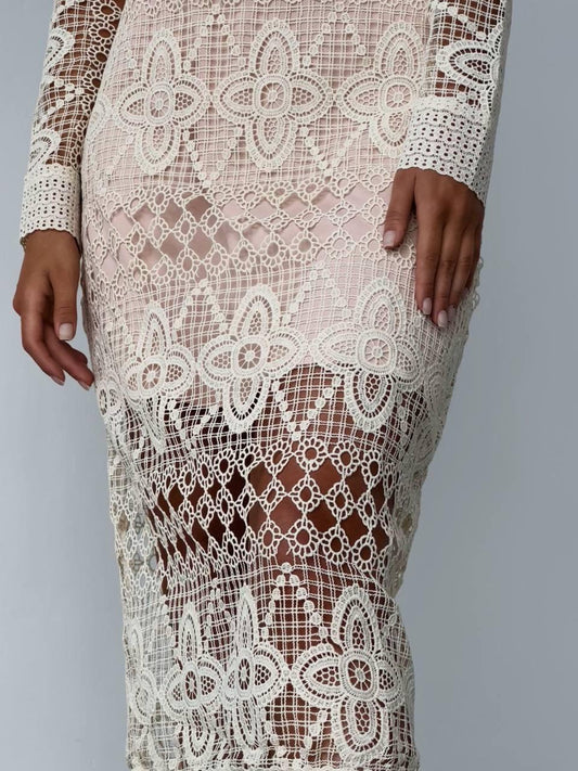 33% İndirimDantel Detaylı Krem Midi Elbise