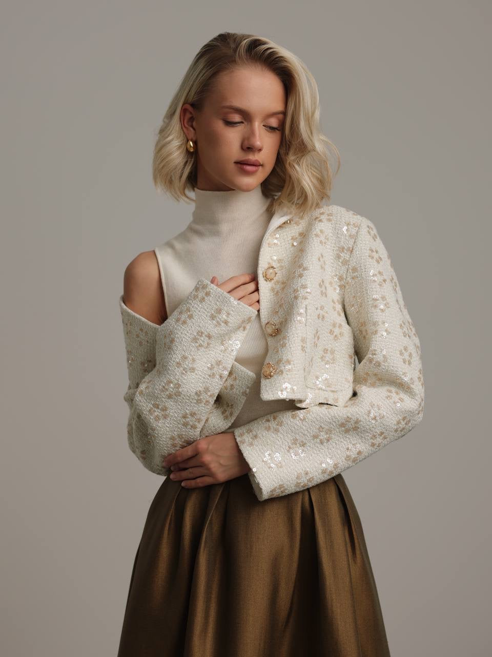 Stil Önerisi: Gold/inci minimal takılarla daha zarif bir hava ver.