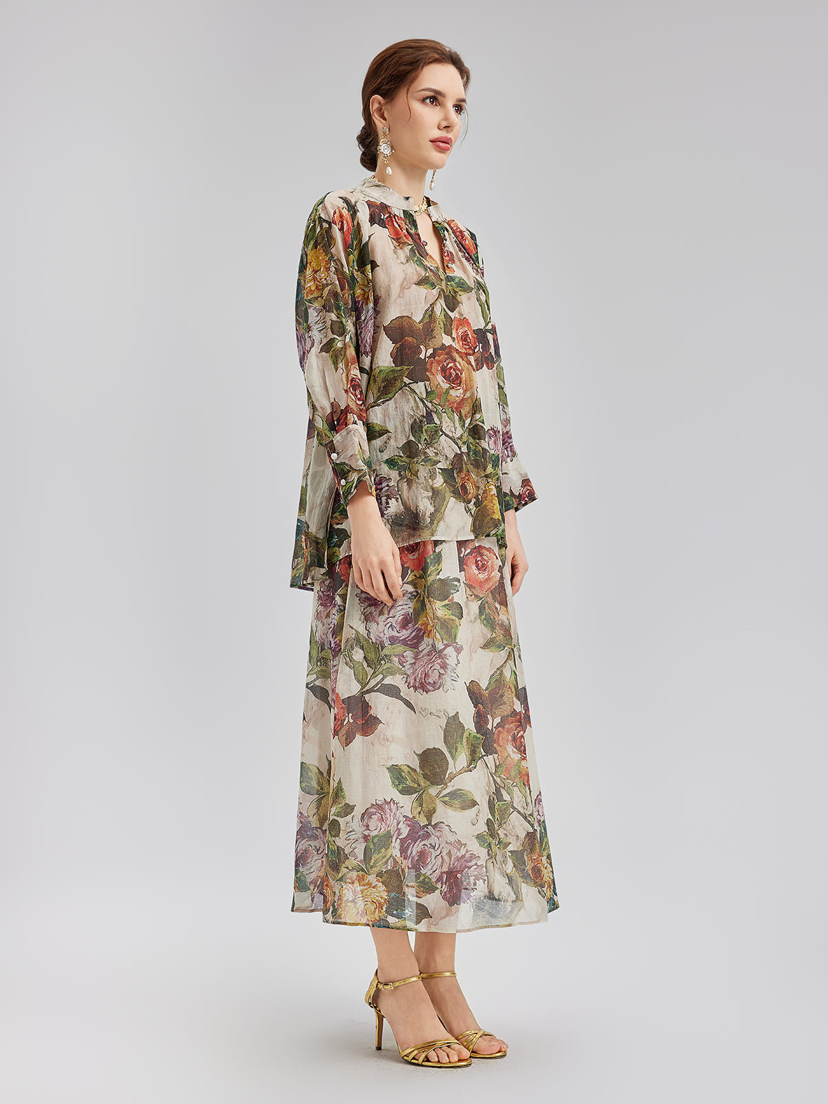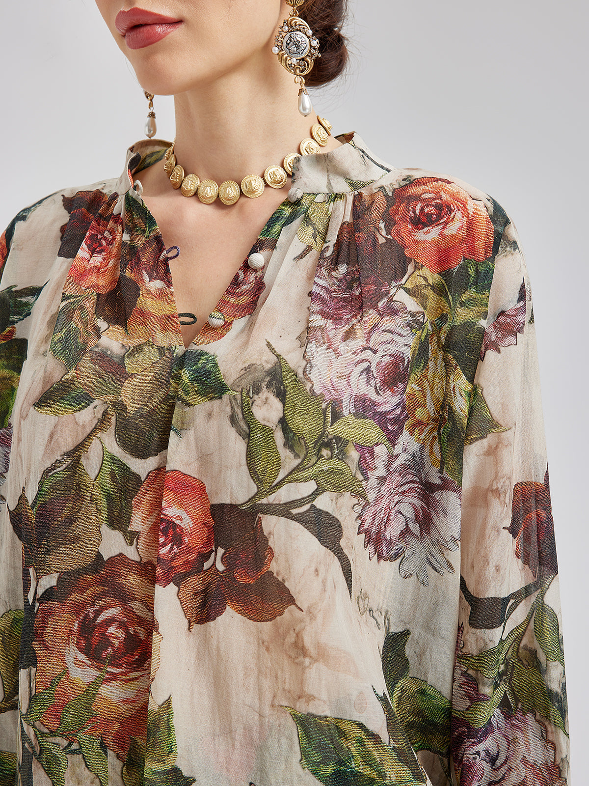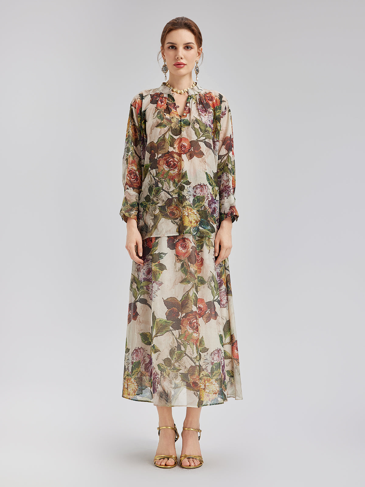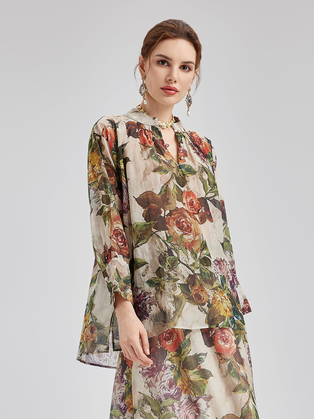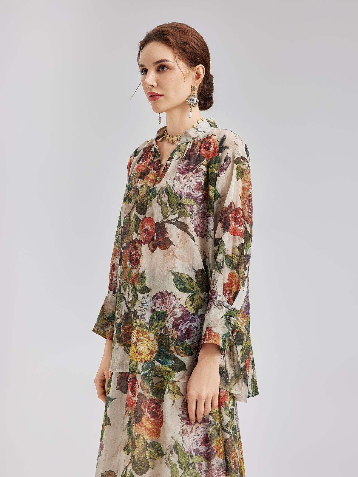 Klasik Romantik Desenli İpek Gömlek