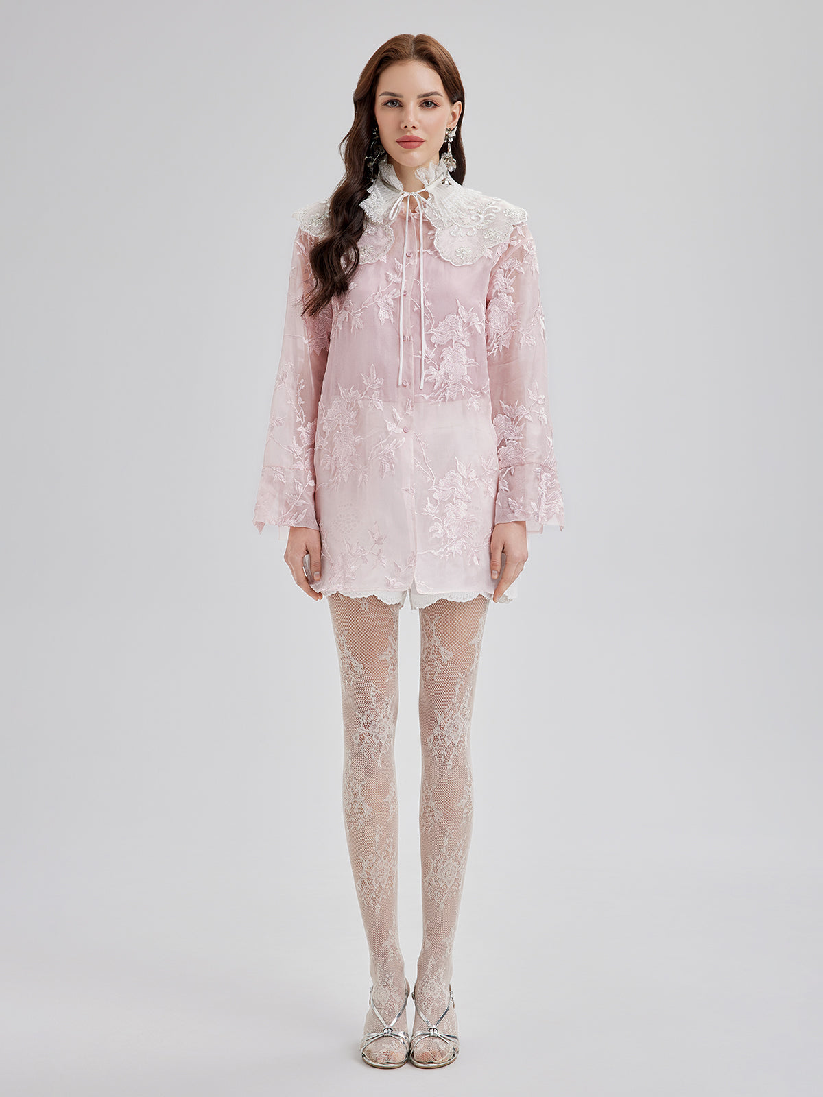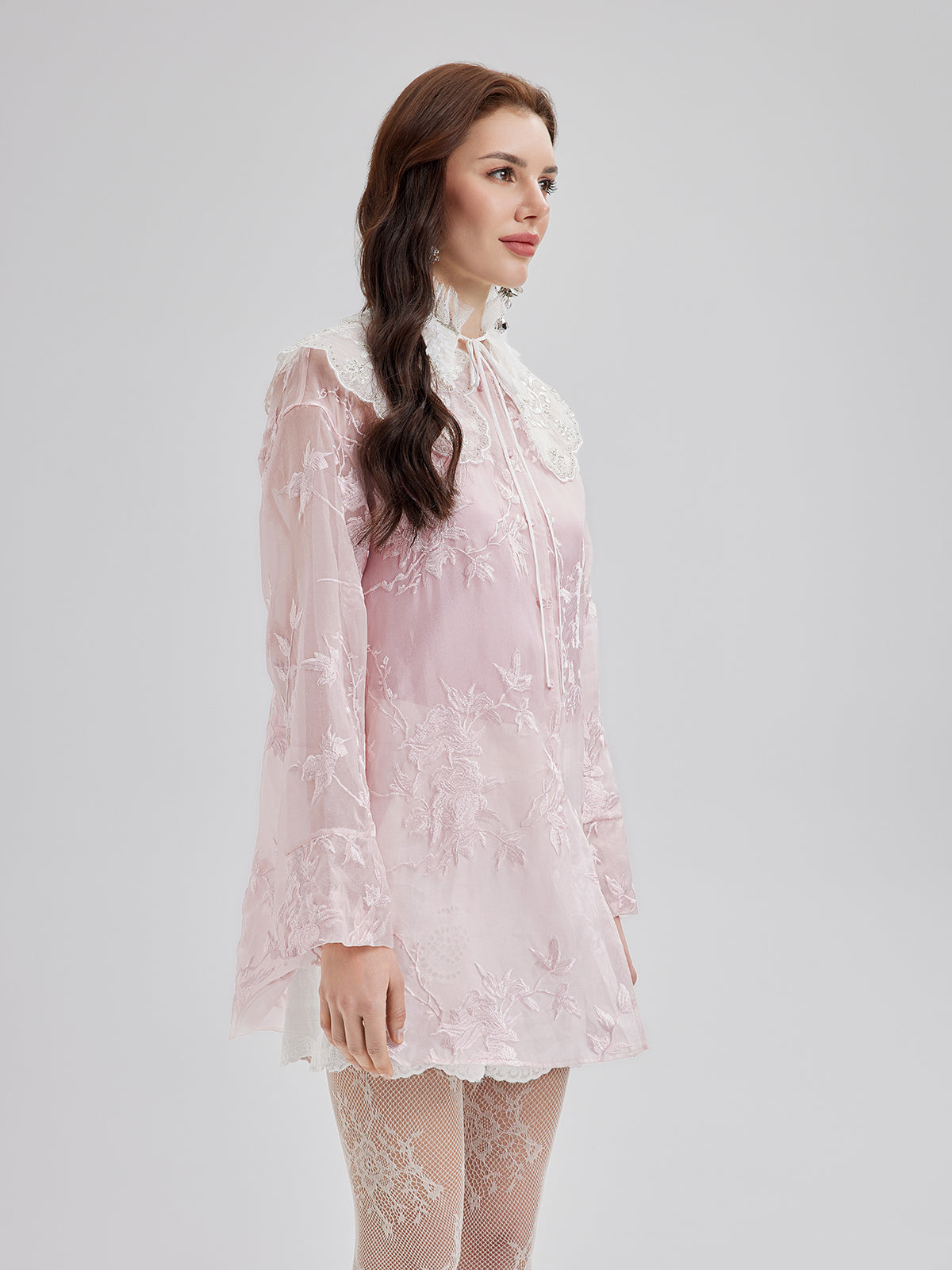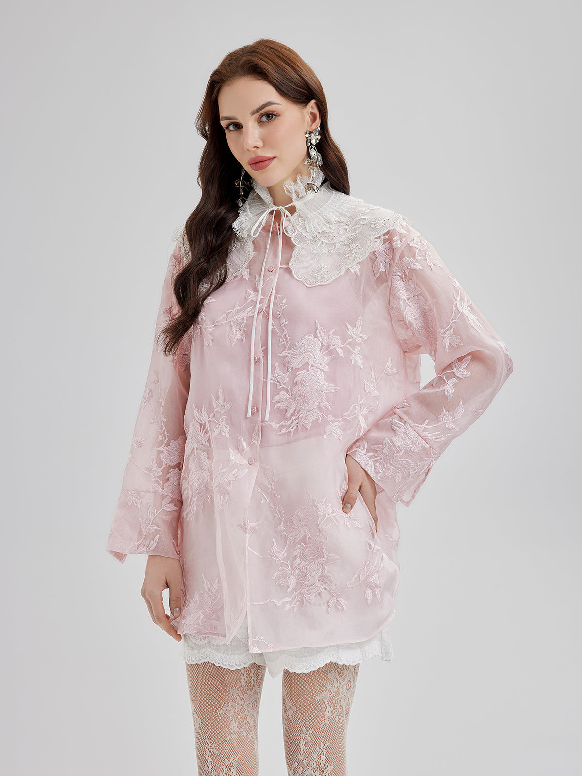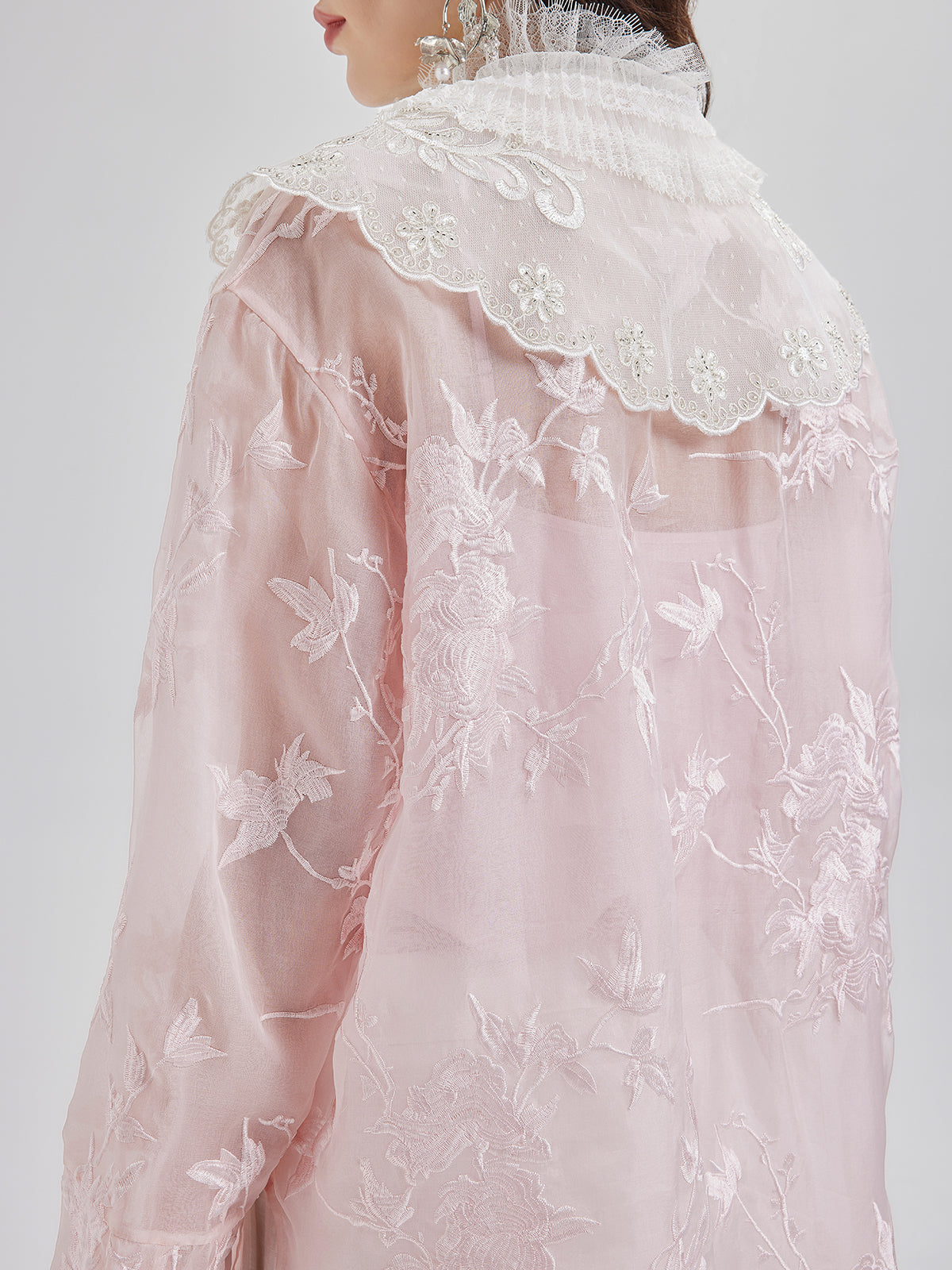 Nakışlı Organze Şeffaf Bluz