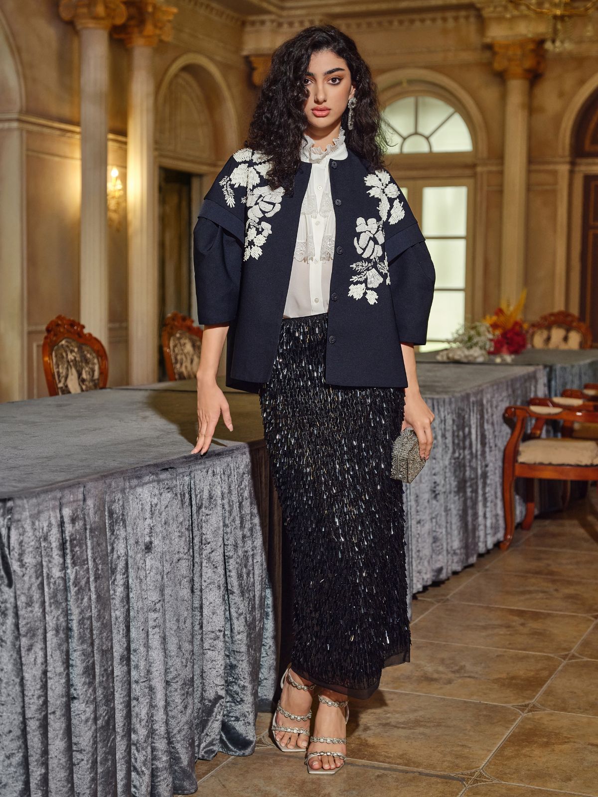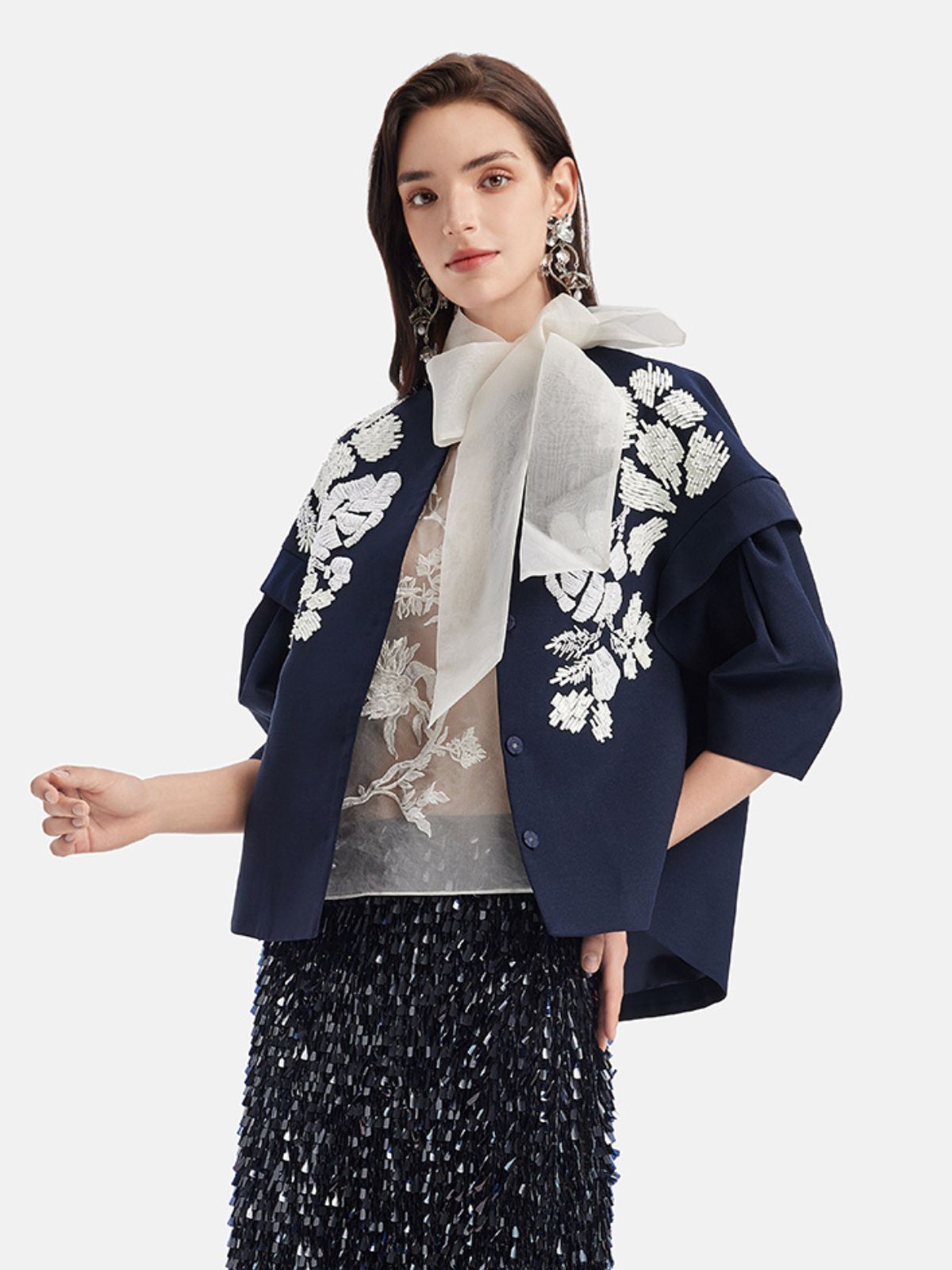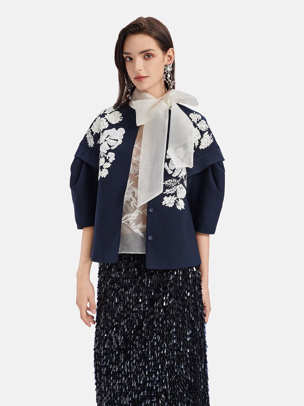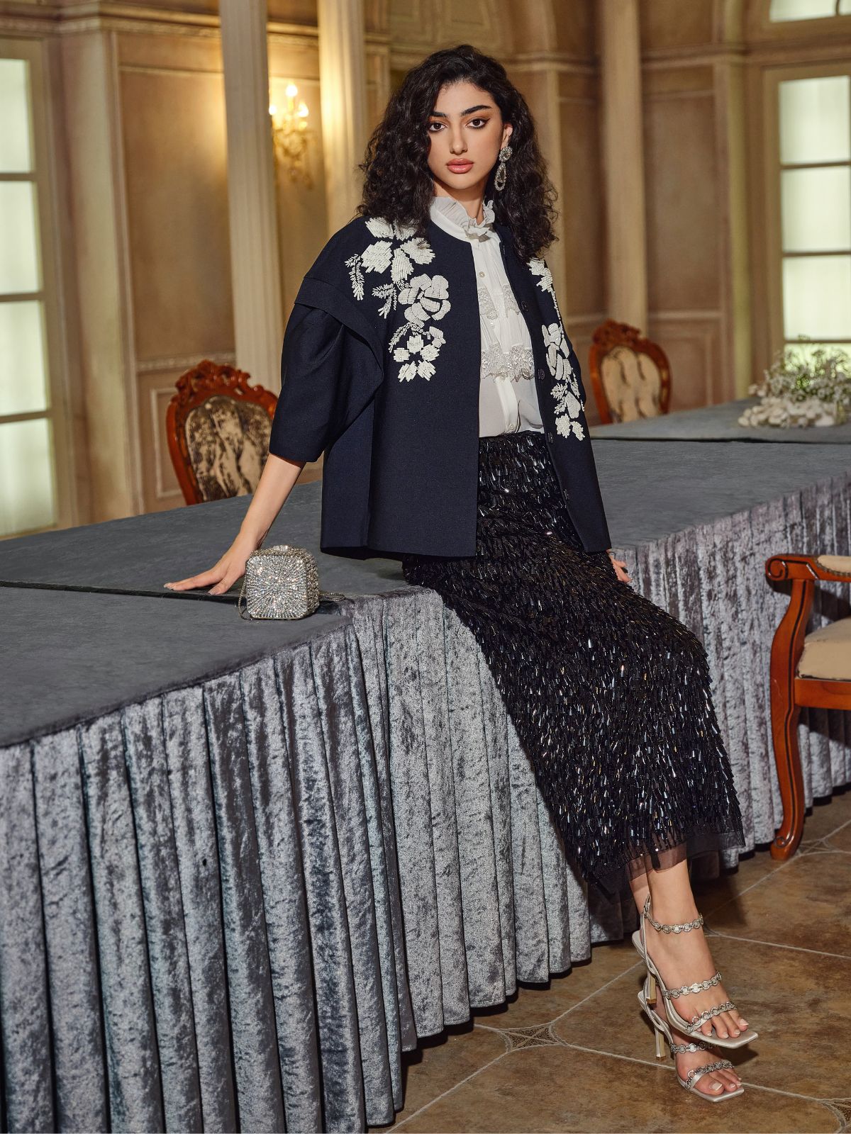 El İşlemeli Boncuklu Kısa Ceket