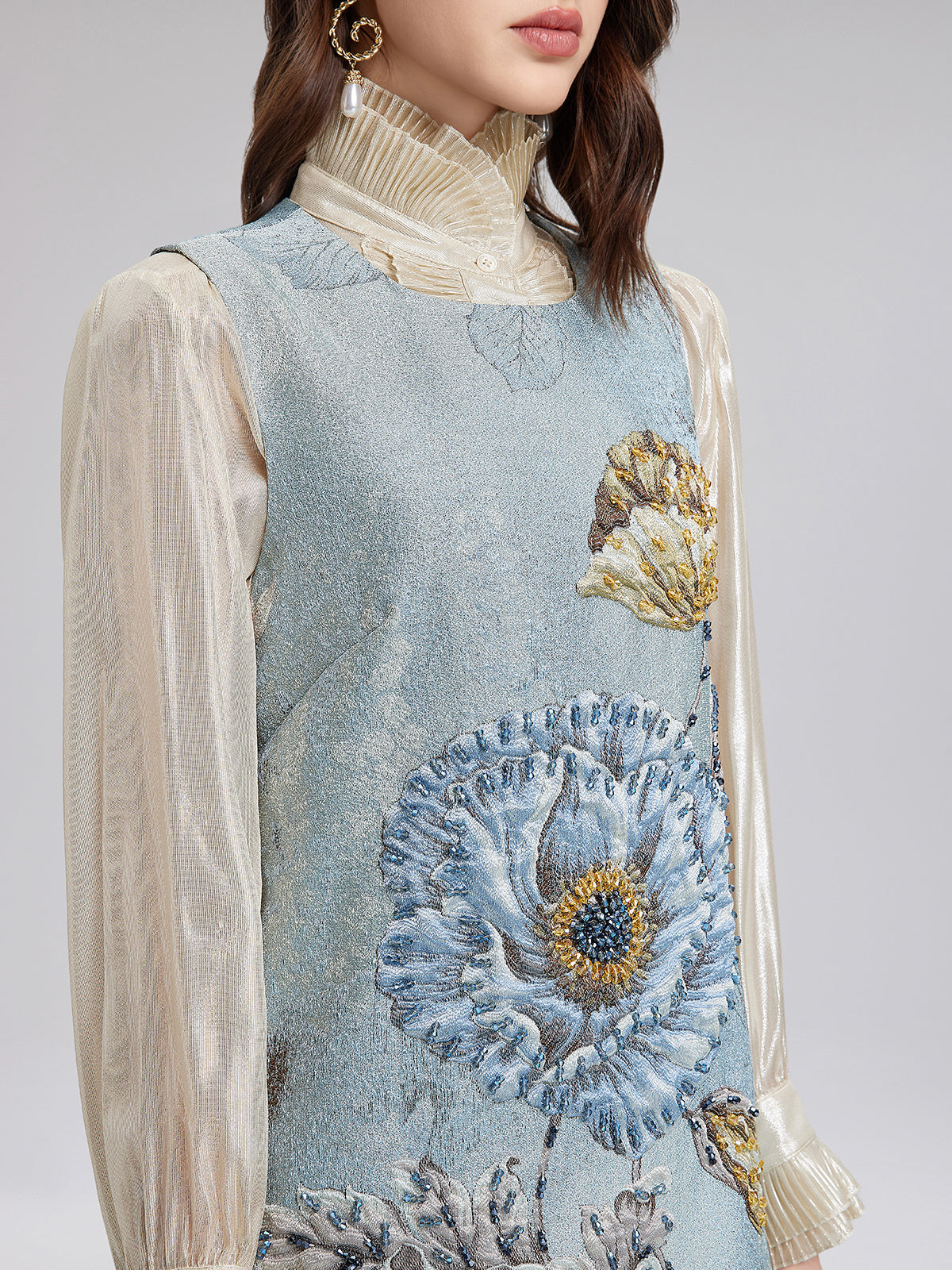 El Yapımı 3 Boyutlu Çiçekli Boncuklu Elbise
