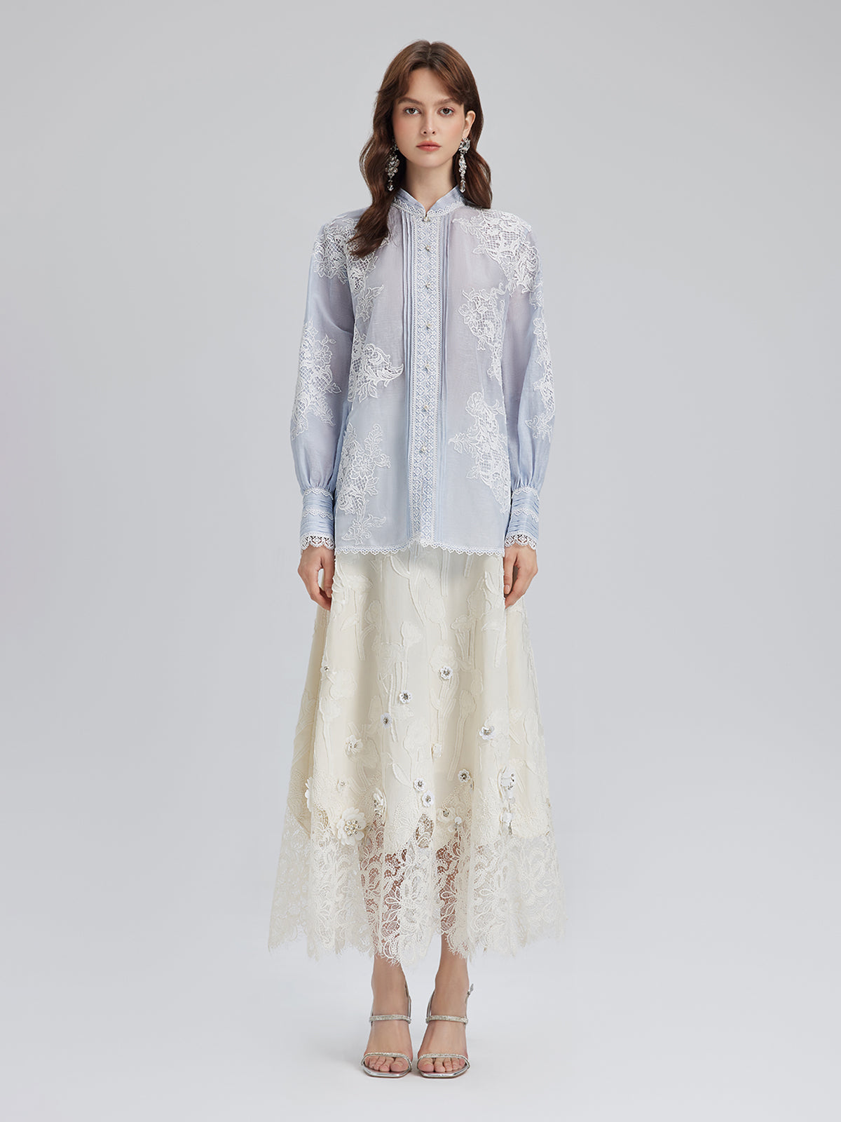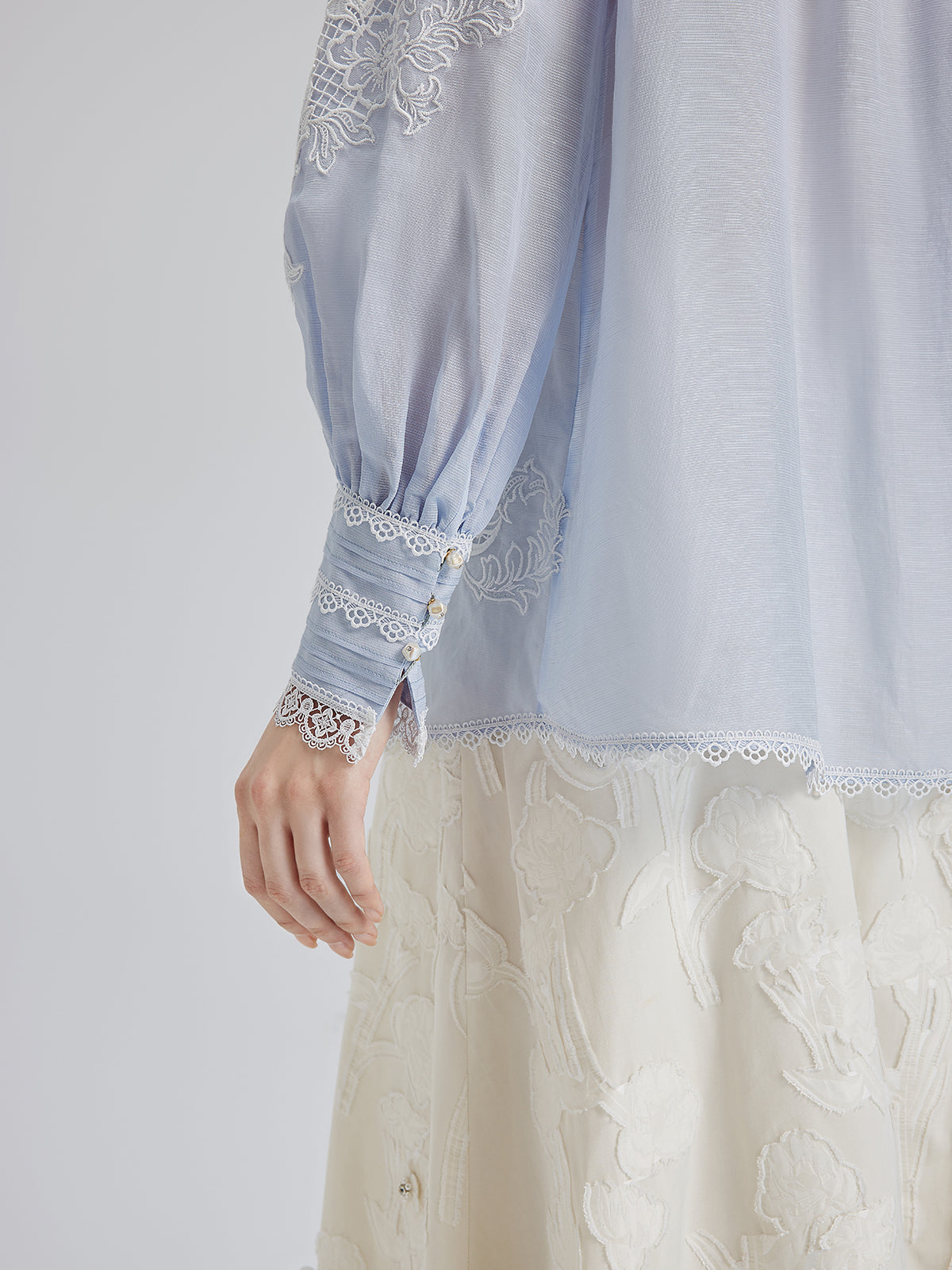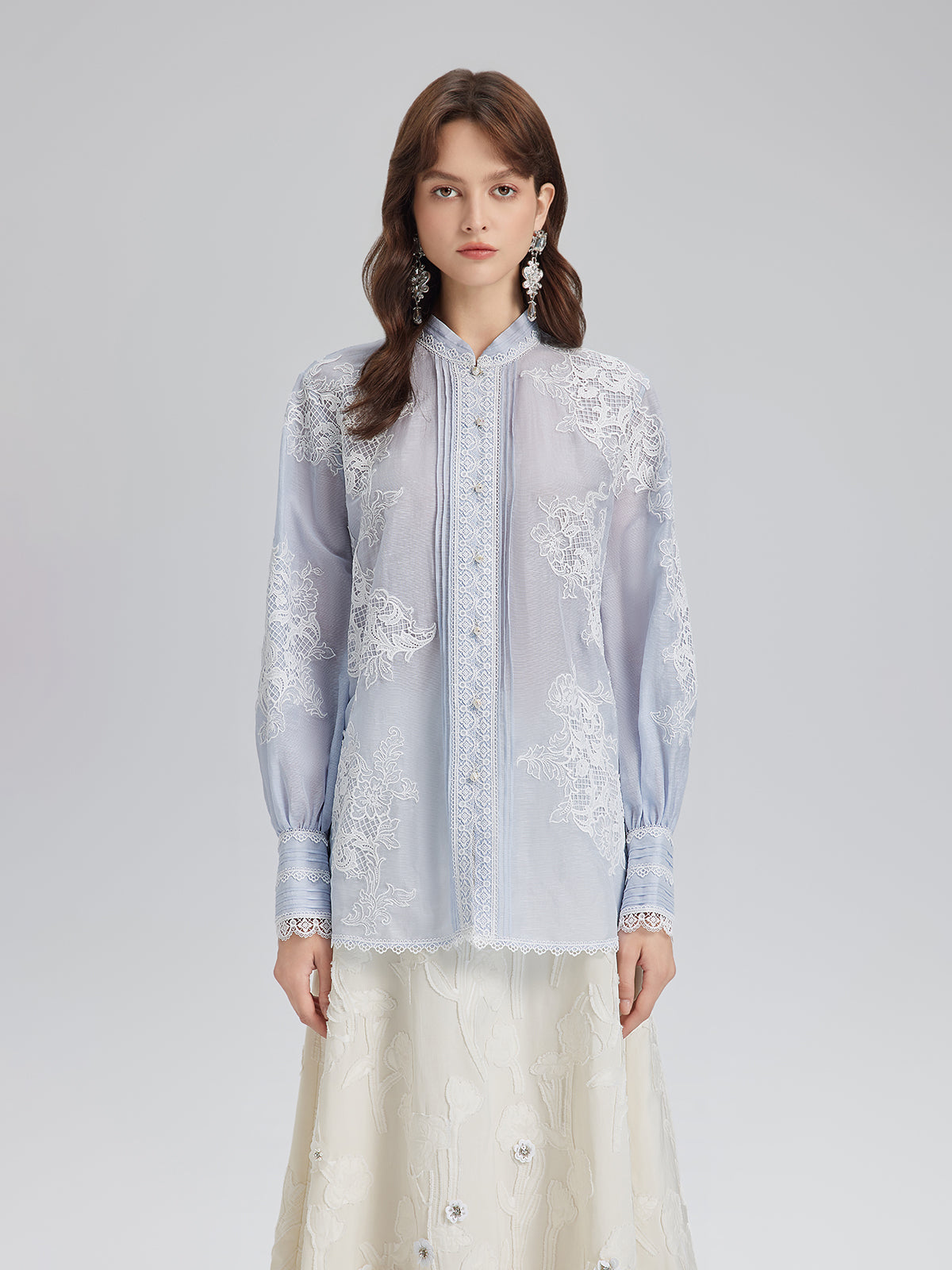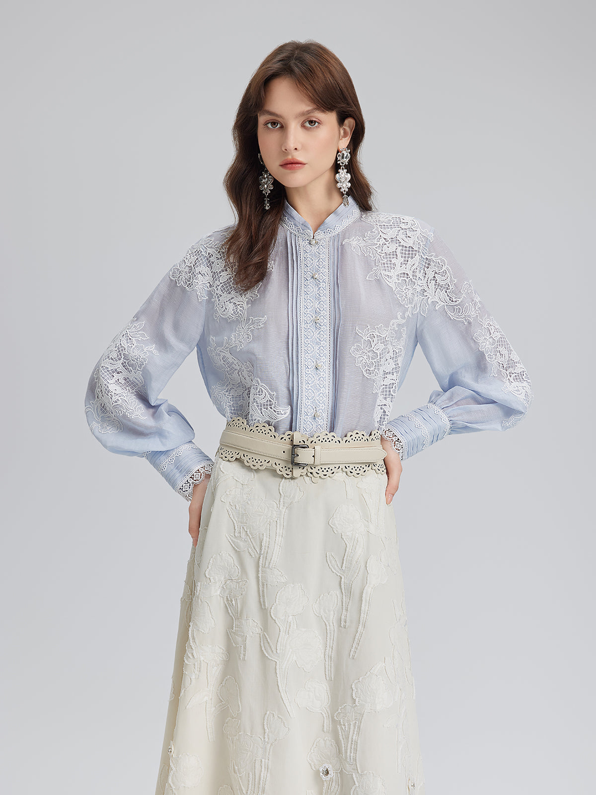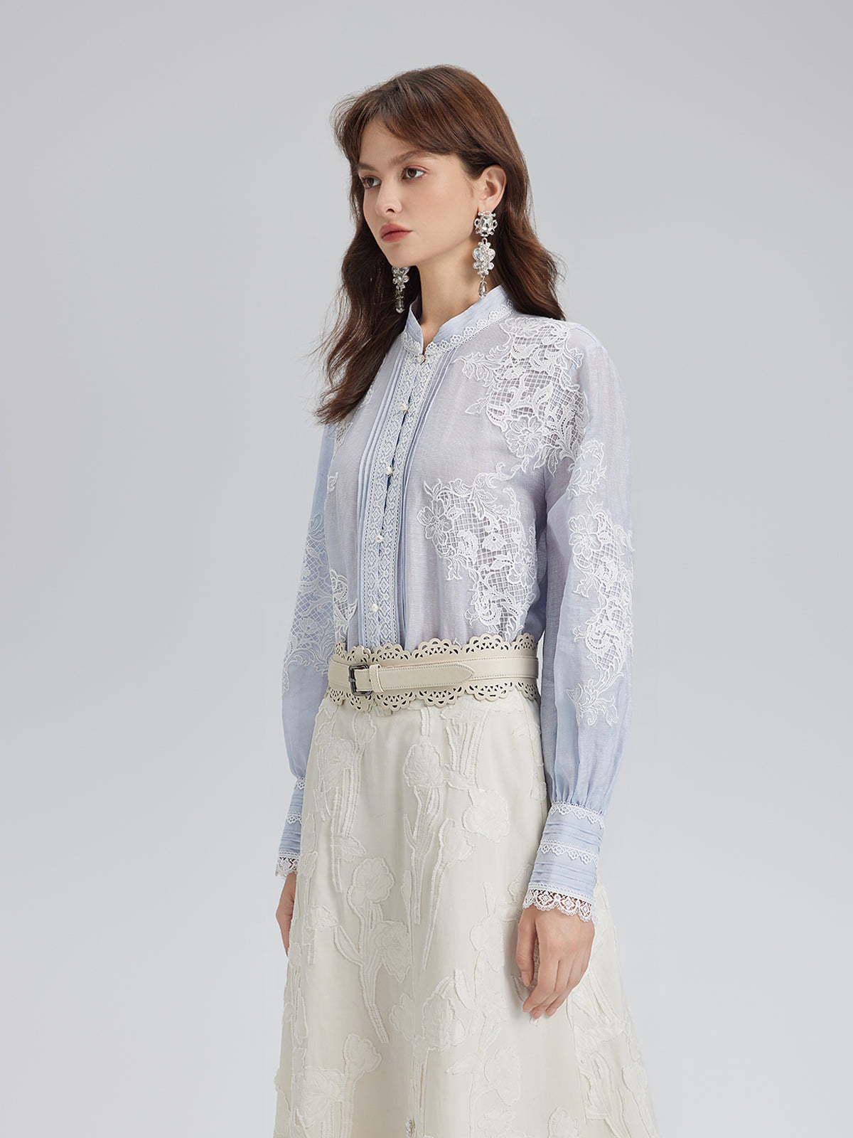 El Yapımı Yama İşli Keten Karışımlı Dantel Gömlek