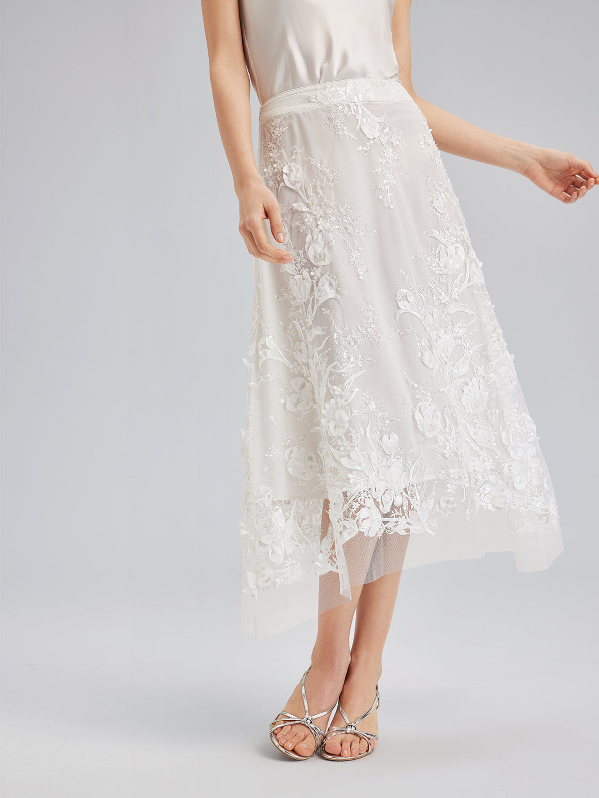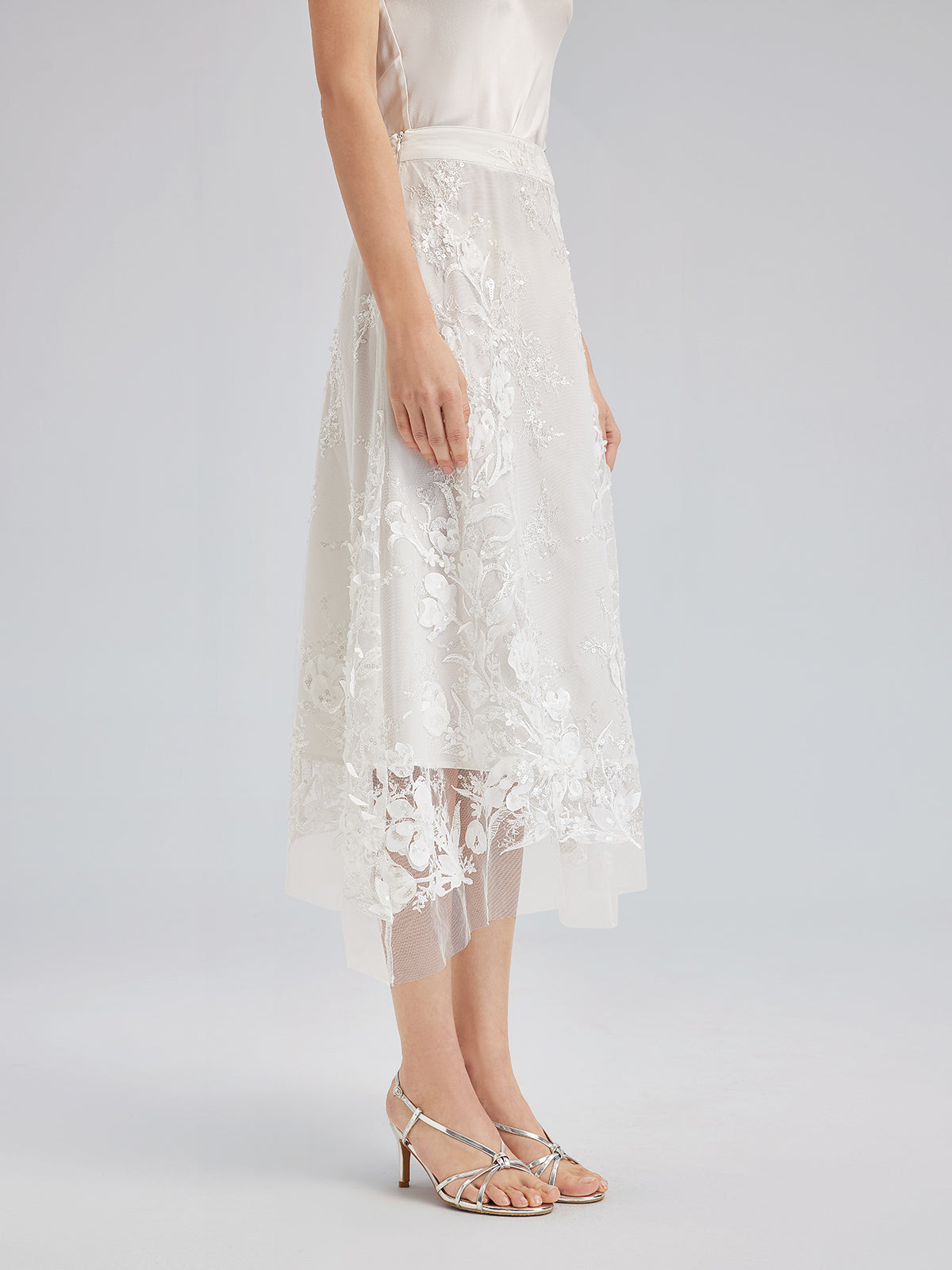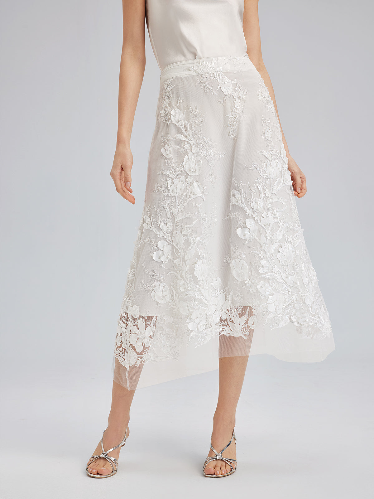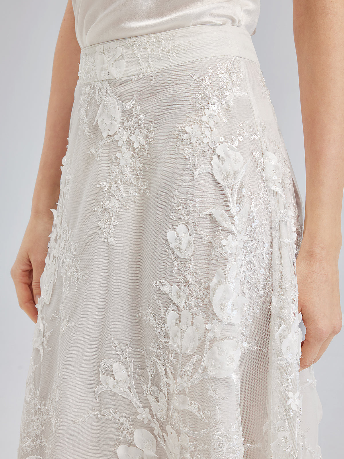 İtalyan 3 Boyutlu Boncuklu Çiçekli Etek