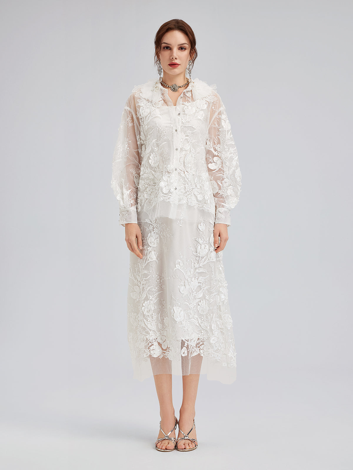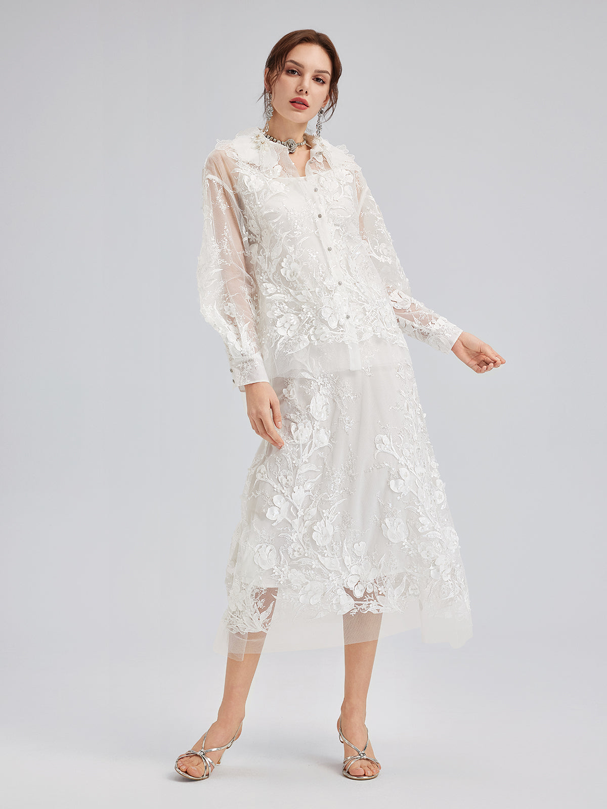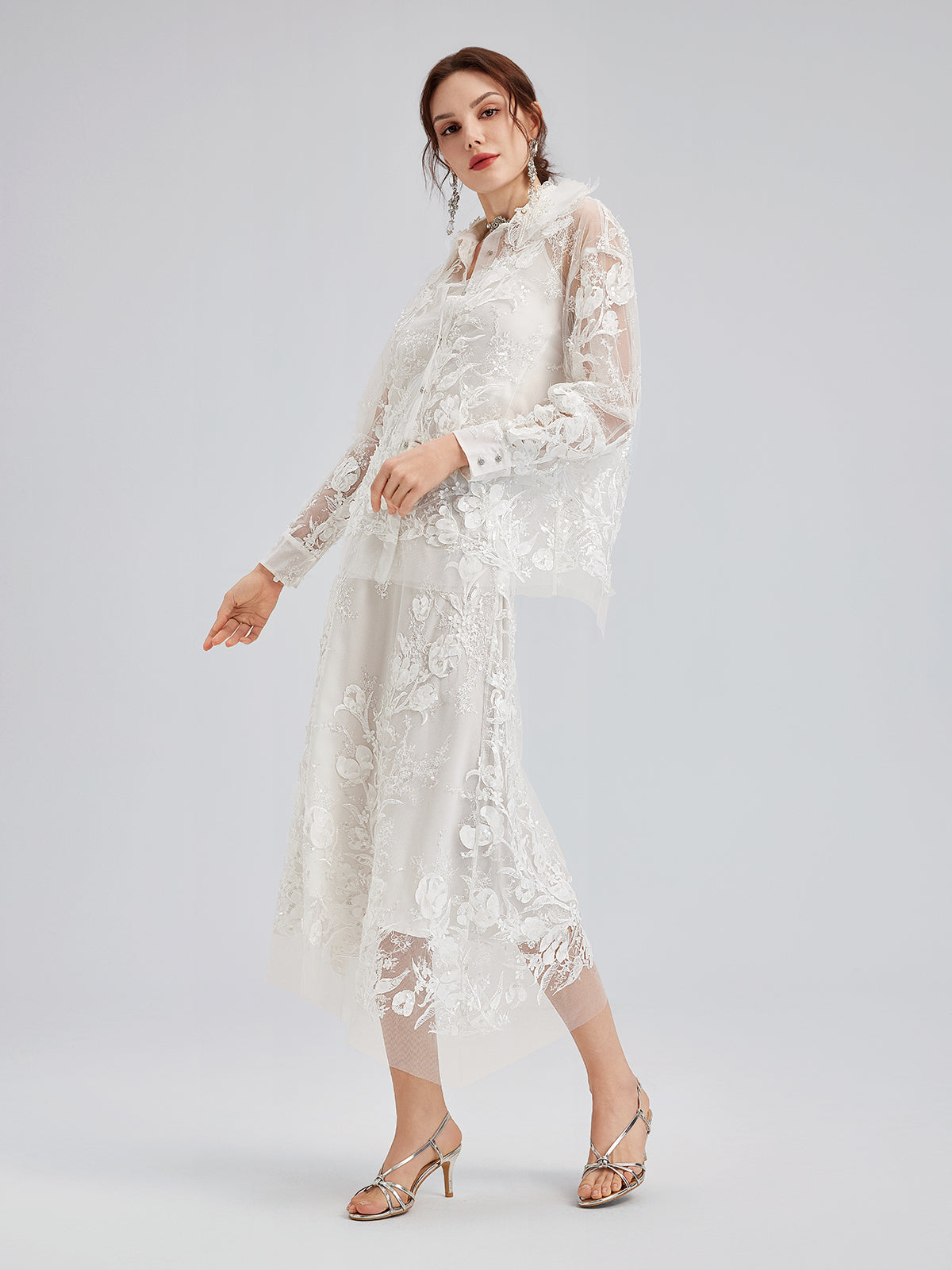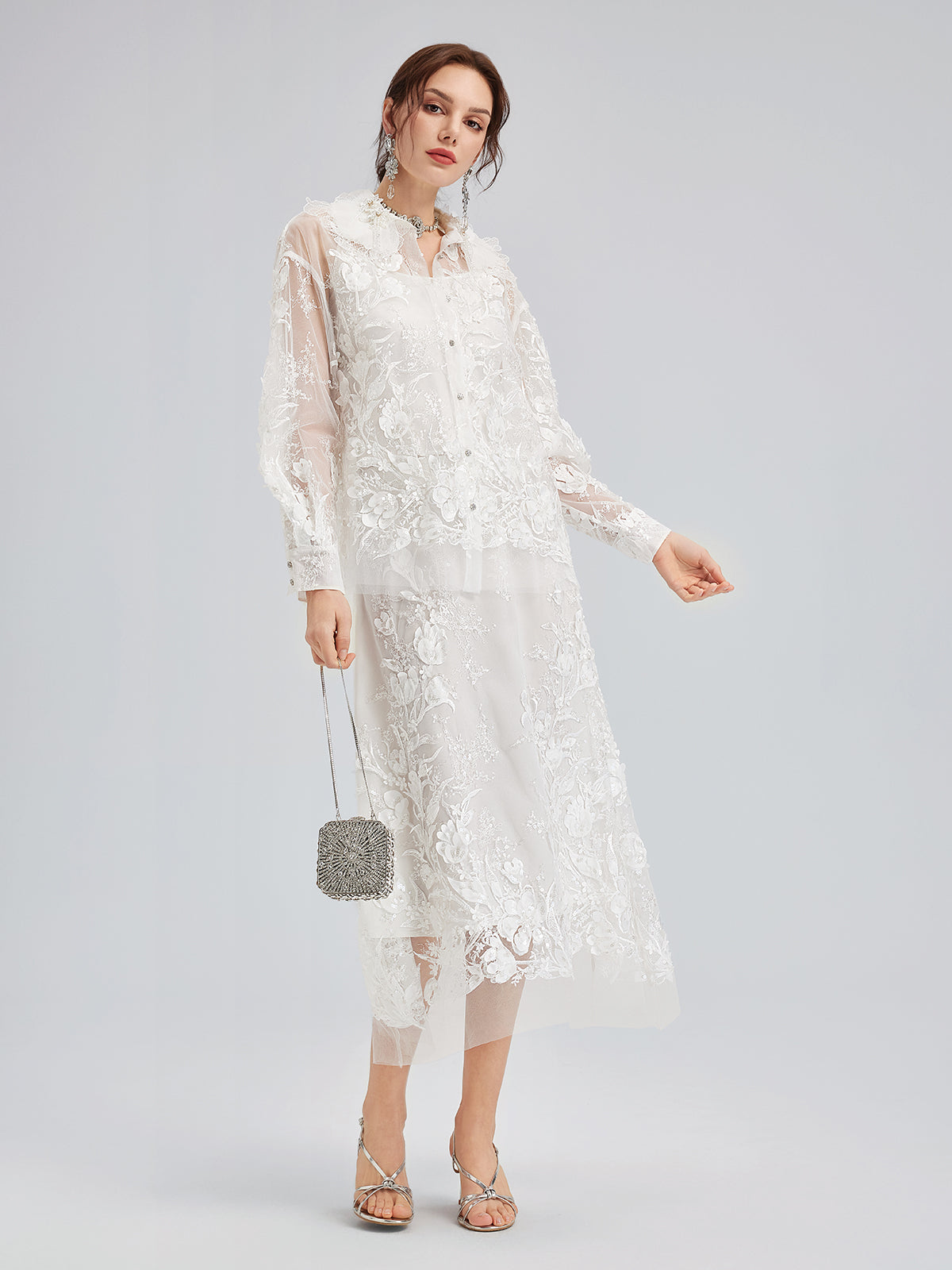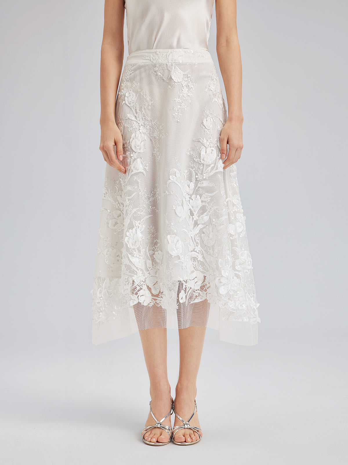İtalyan 3 Boyutlu Boncuklu Çiçekli Etek