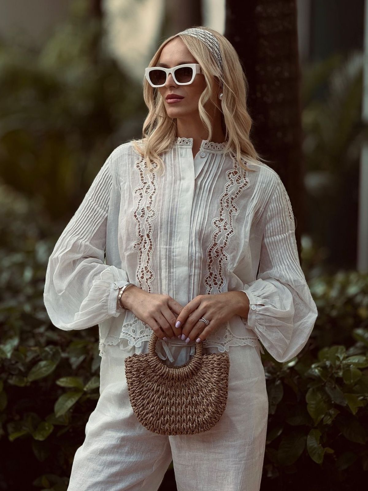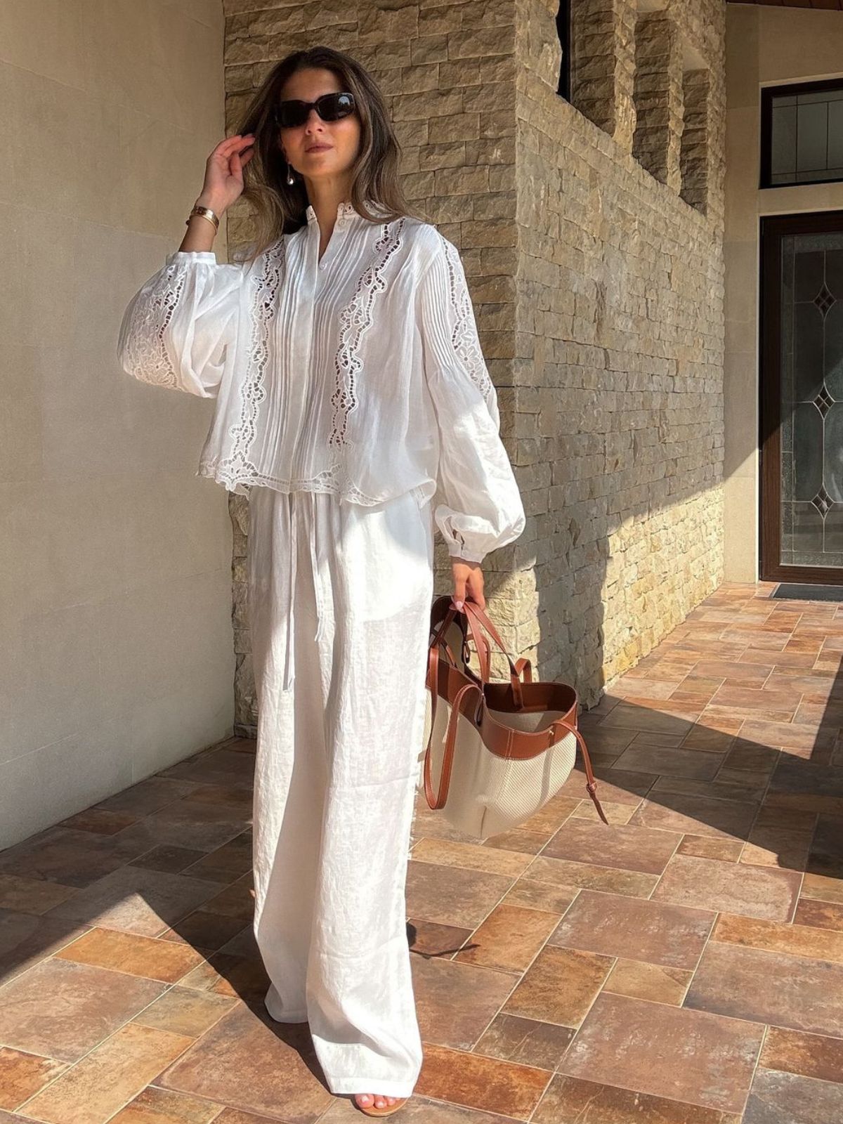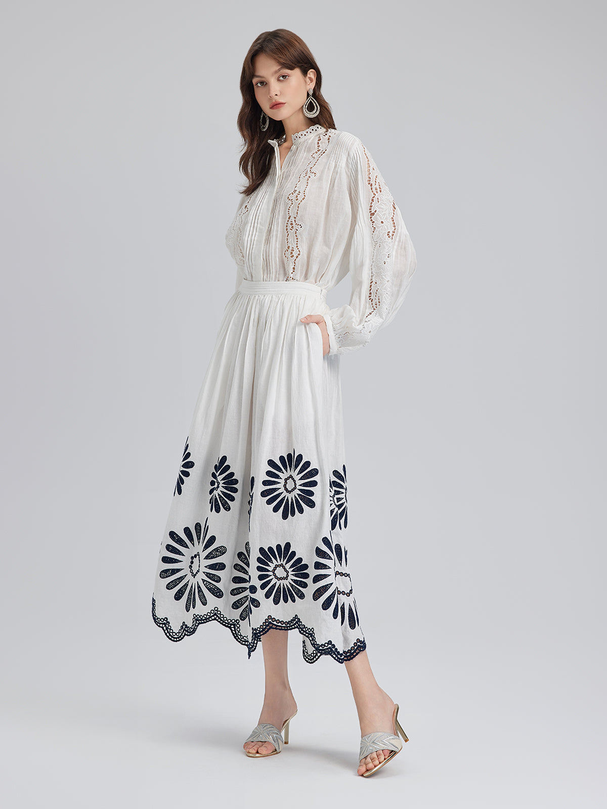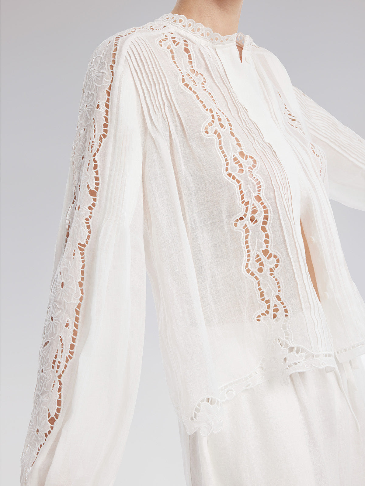 Pileli Delik İşlemeli Nakışlı Bluz