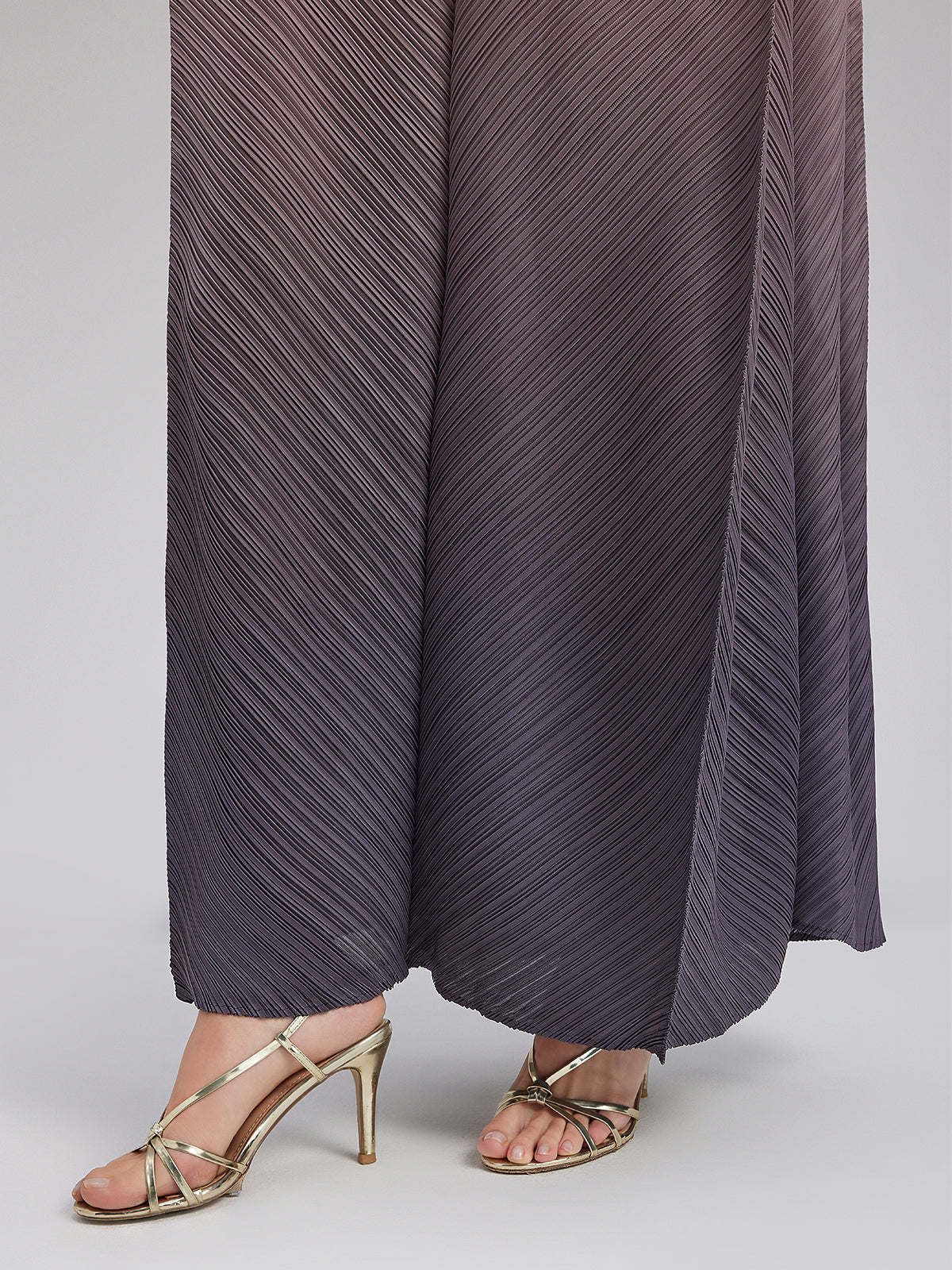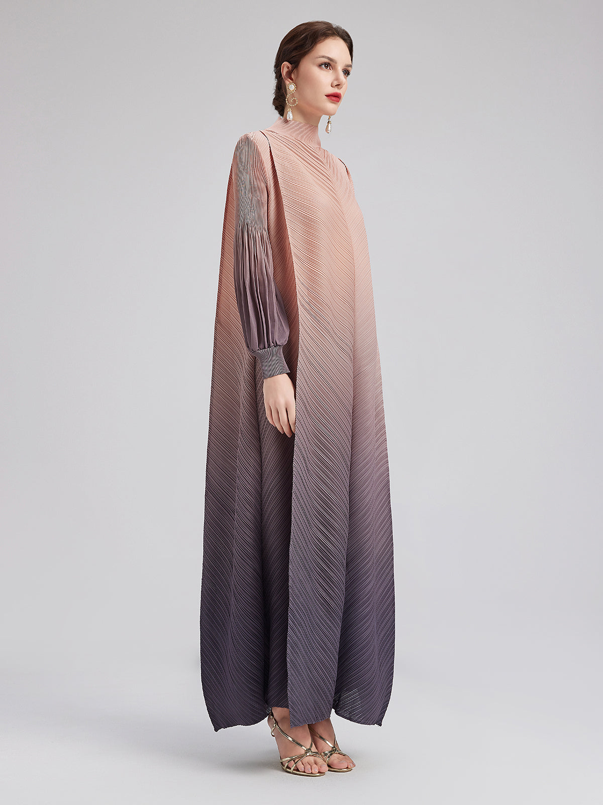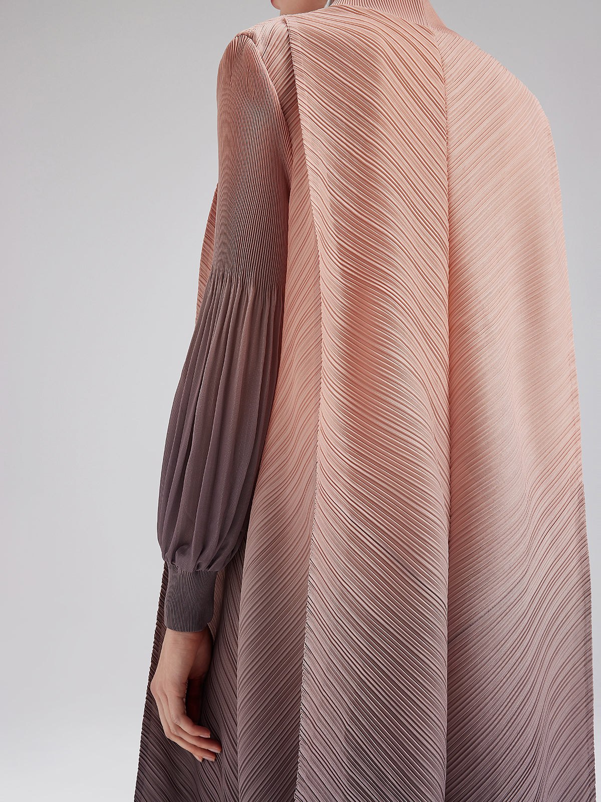 Romantik Renk Geçişli Pileli Mimari Elbise