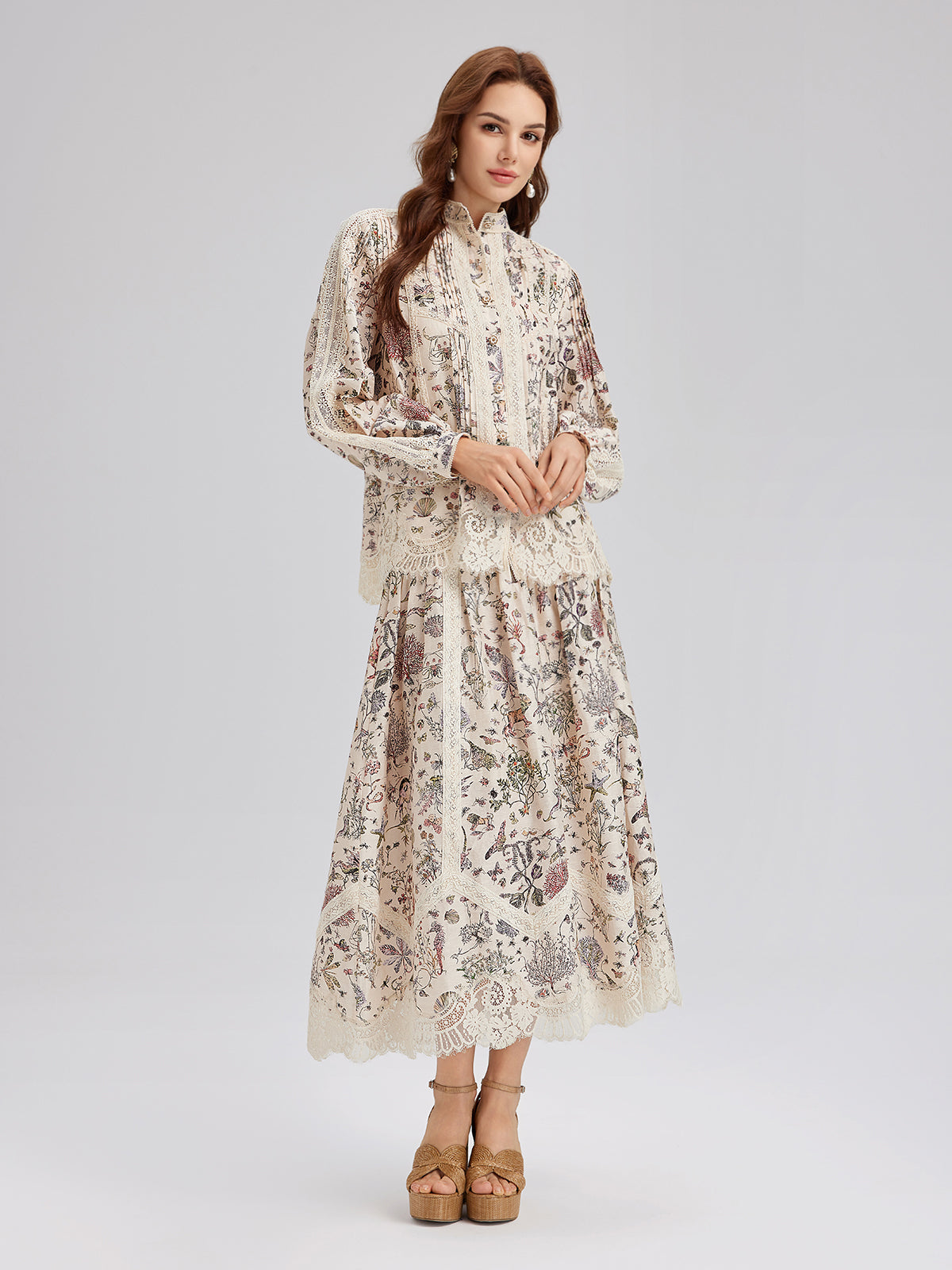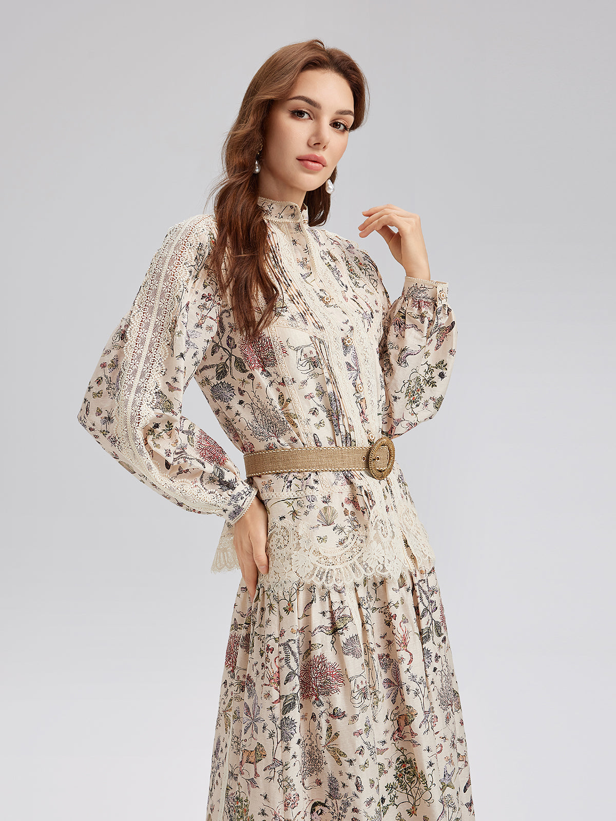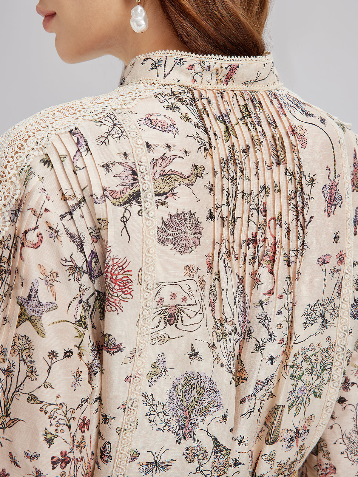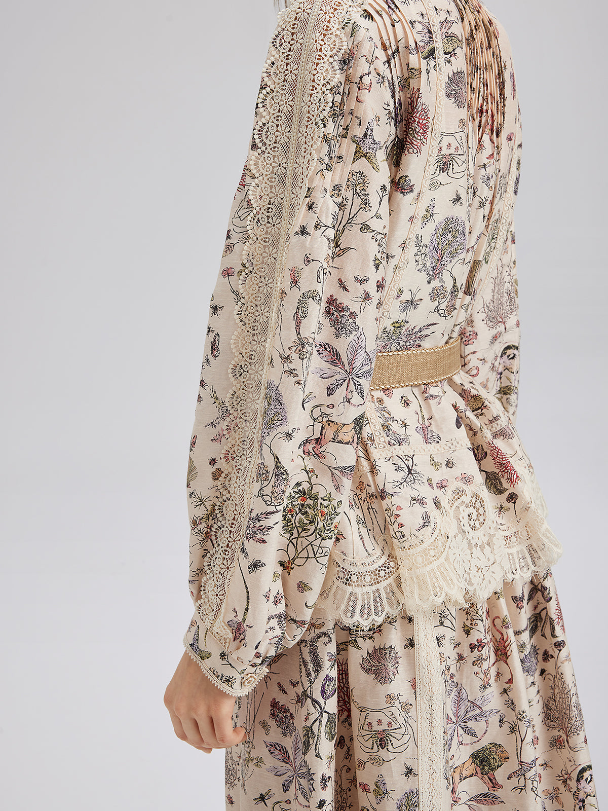 İpek-Keten Çiçekli Dantel Hakim Yaka Gömlek